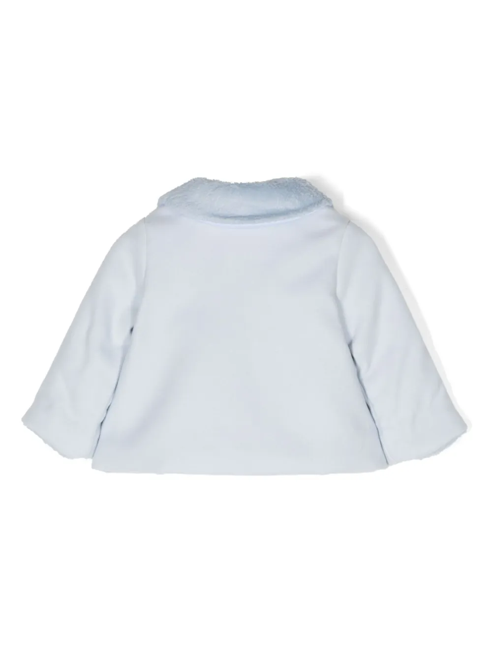 Воротник из искусственного меха, застежка на пуговицах спереди, прямой подол и подкладка из искусственного меха.