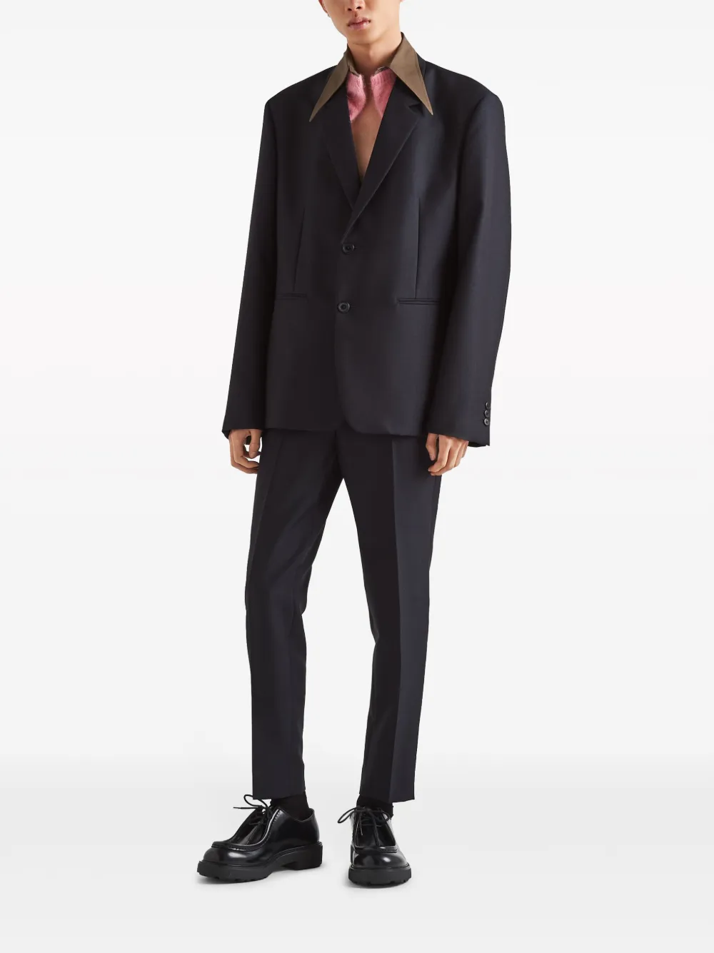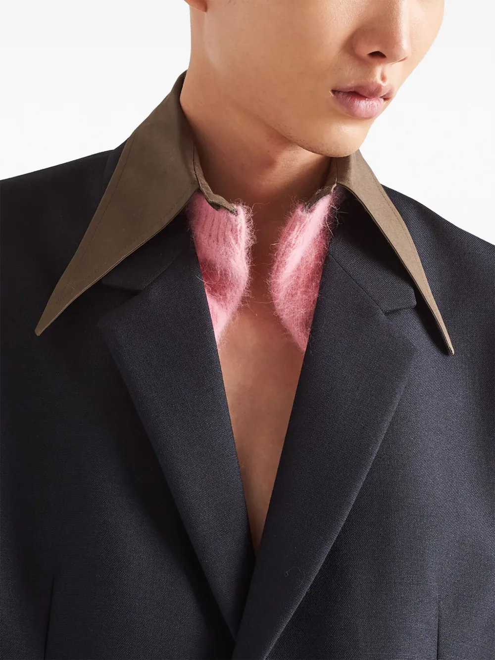 Шерстяной пиджак со съемным воротником Prada, синий 372 423₽