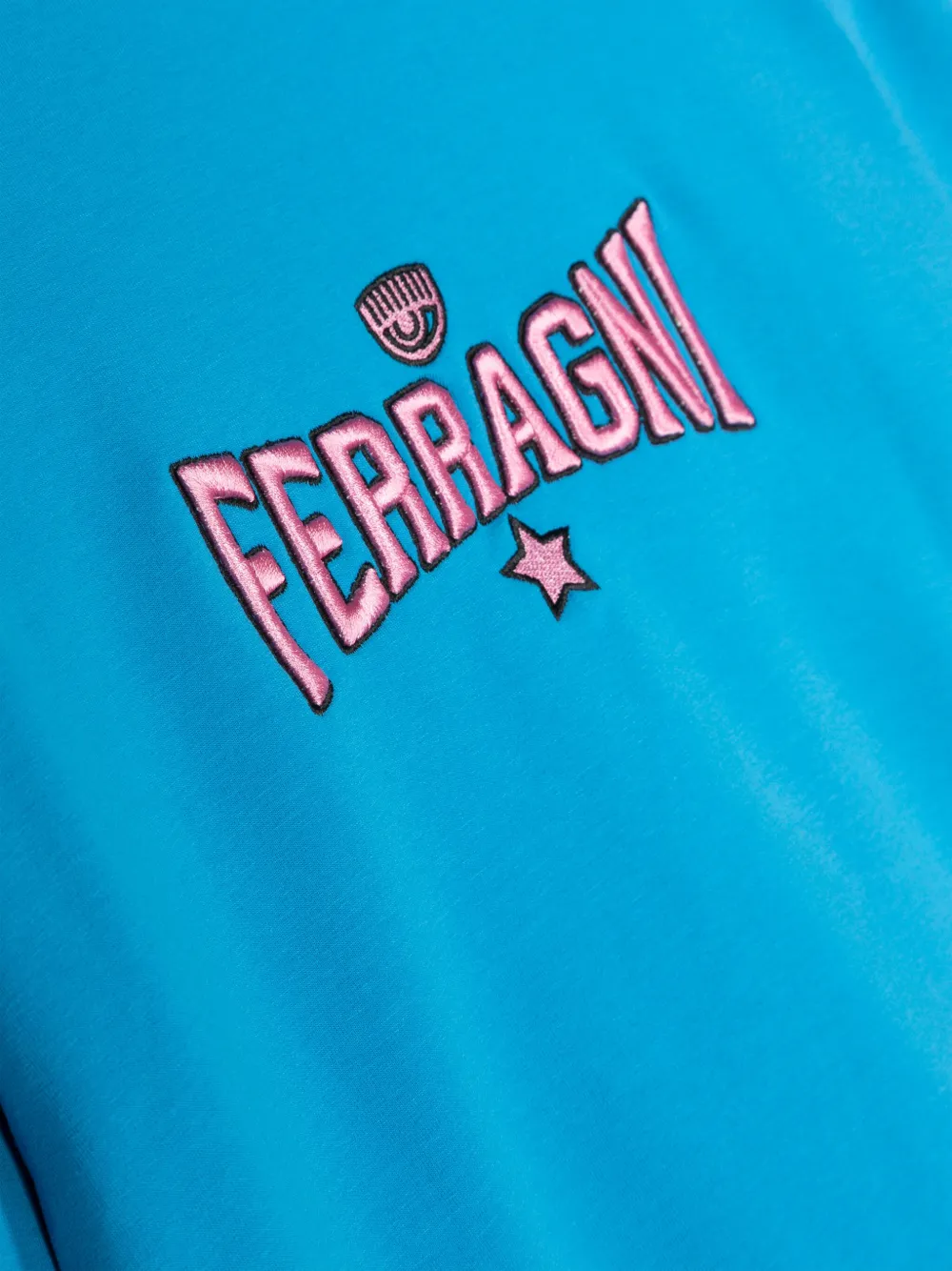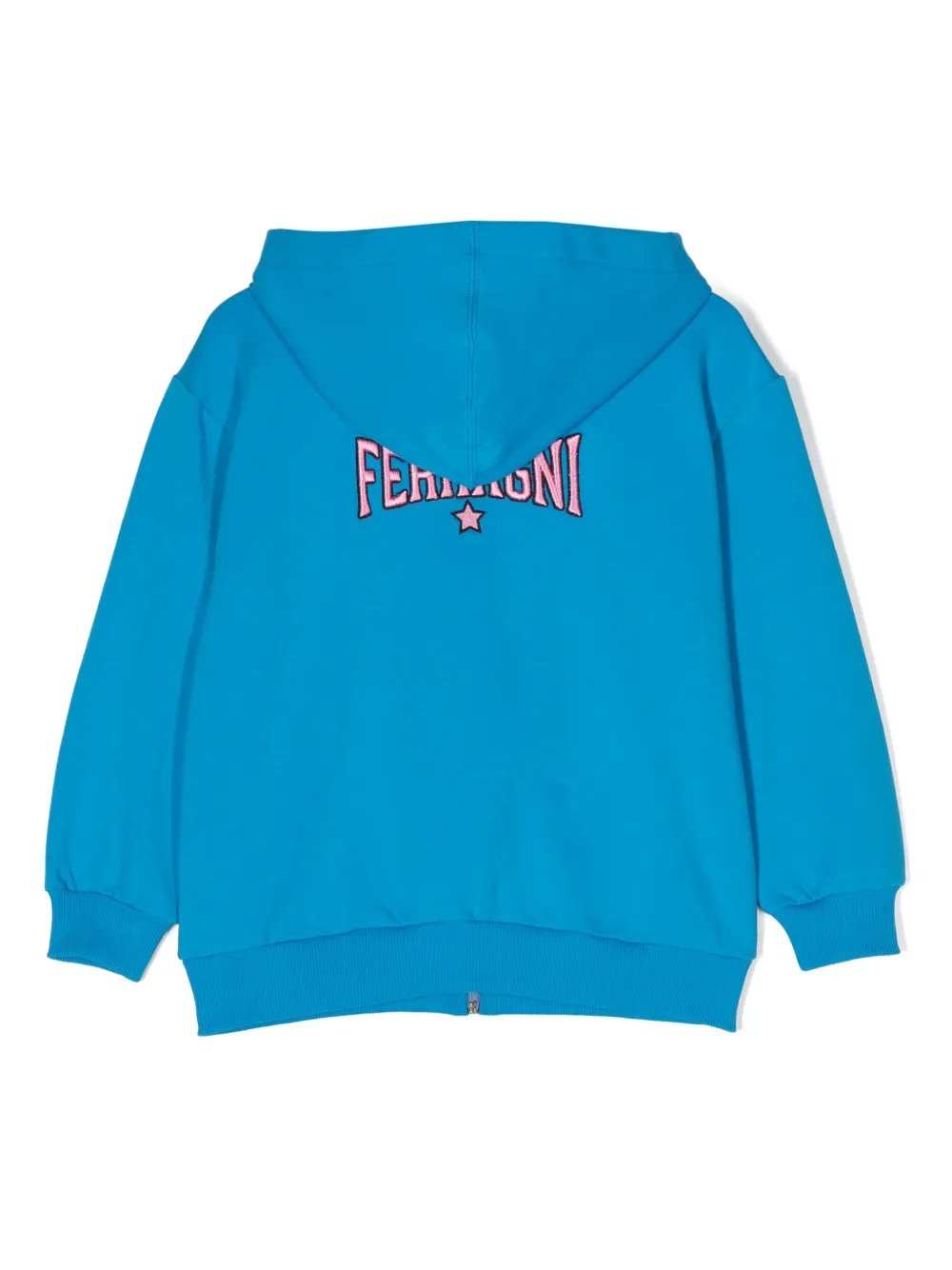 Куртка с капюшоном и вышитым логотипом Chiara Ferragni Kids, синий