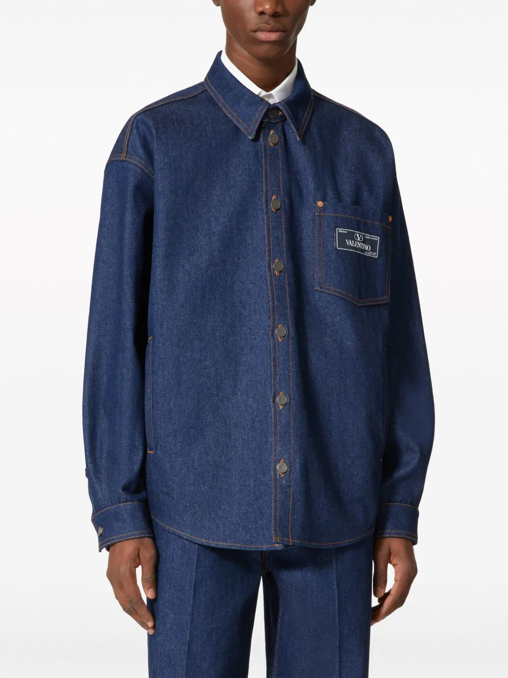 Джинсовая рубашка с нашивкой-логотипом VALENTINO GARAVANI, синий