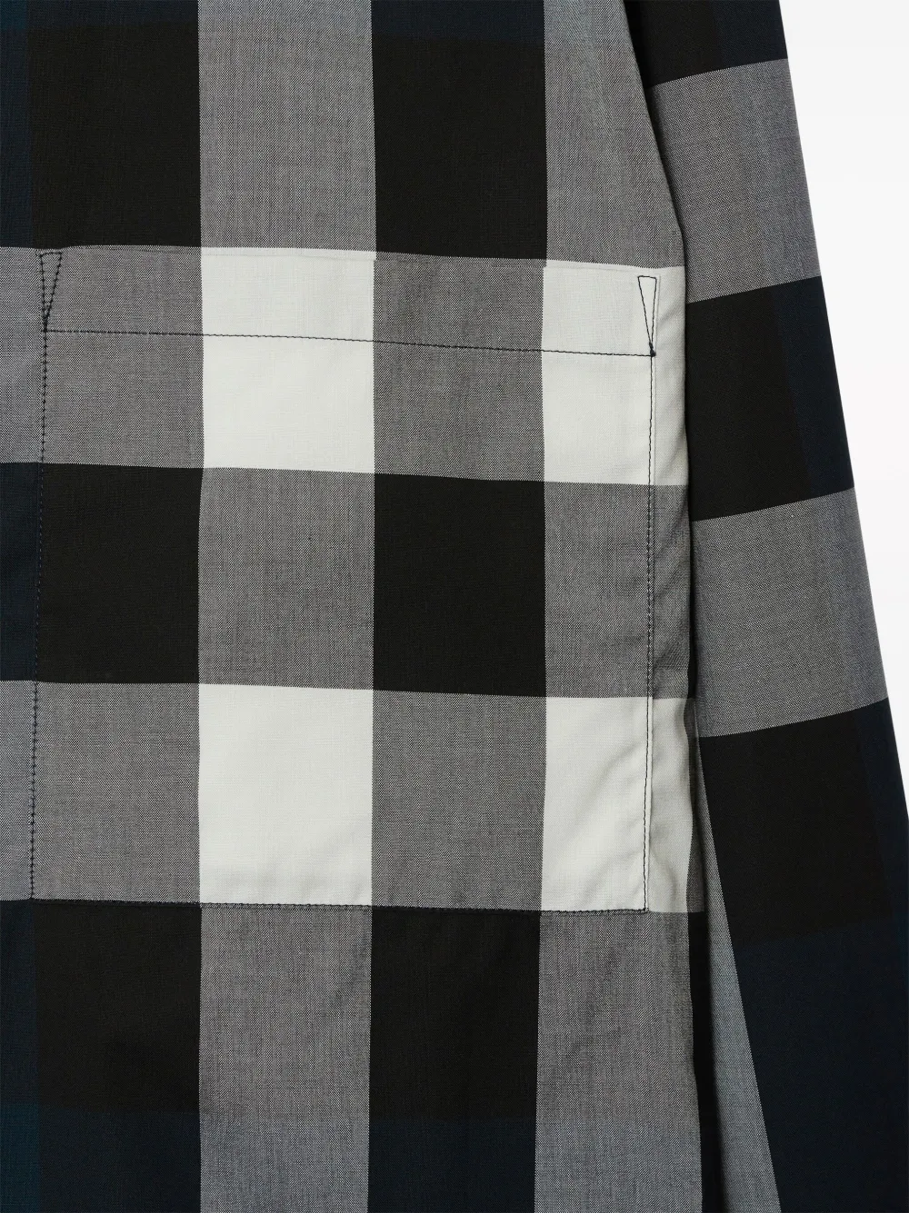 Черный/разноцветный, хлопок, клетчатый узор, классический воротник, застежка на пуговицах спереди, длинные рукава, рукава с манжетами на пуговицах и закругленный подол.