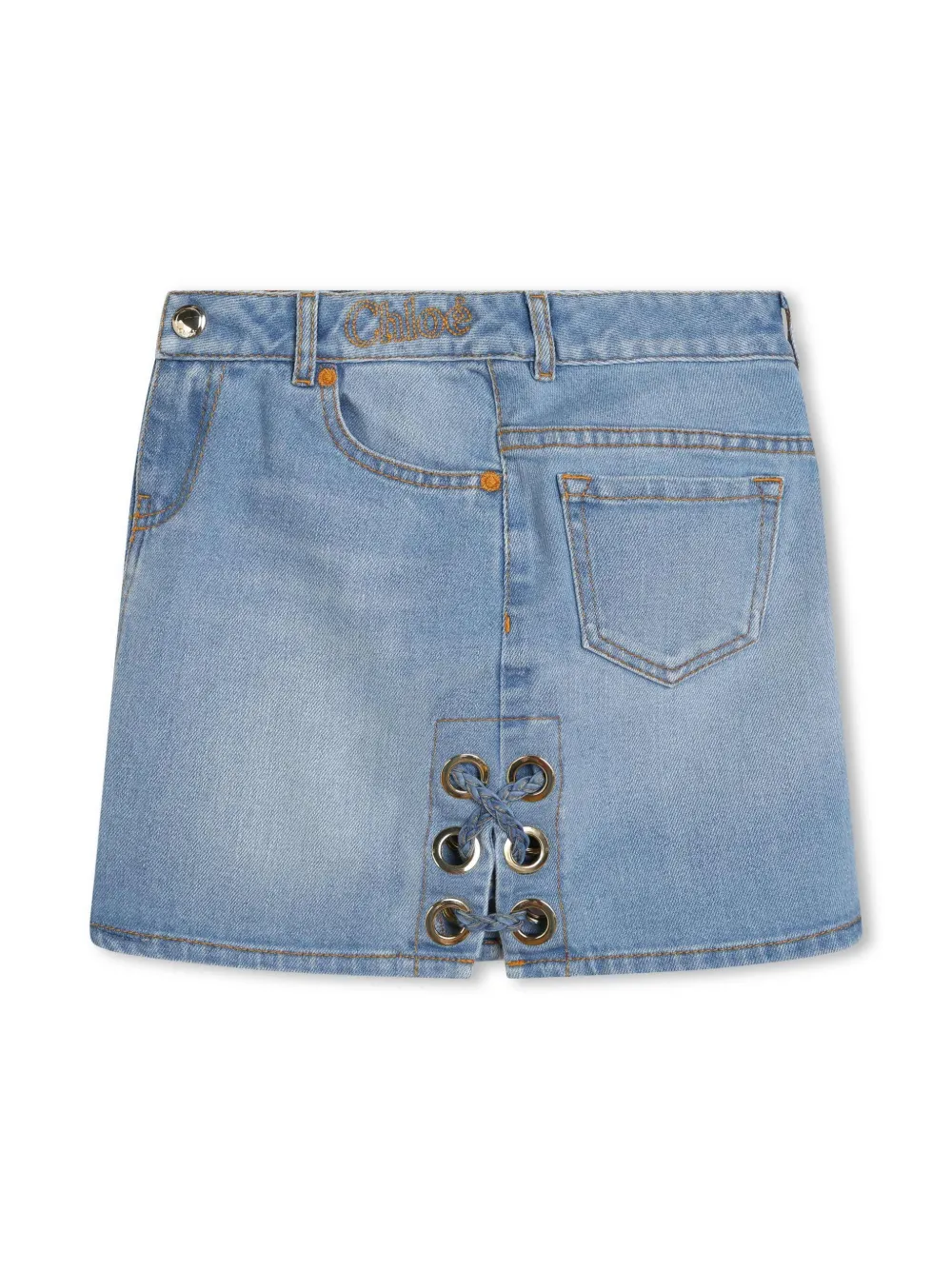 Джинсовая юбка с вышитым логотипом Chloé Kids, синий