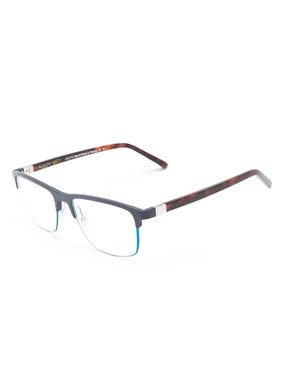 Темно-синий, зеленовато-голубой, шоколадный, металл, двухцветная оправа, прямоугольная оправа, прозрачные линзы, отделка черепаховой расцветки, прямые дужки и дужки с закругленными концами. В комплект входит защитный чехол для очков. Обратите внимание, что на FARFETCH продаются оправы с линзами без диоптрий.