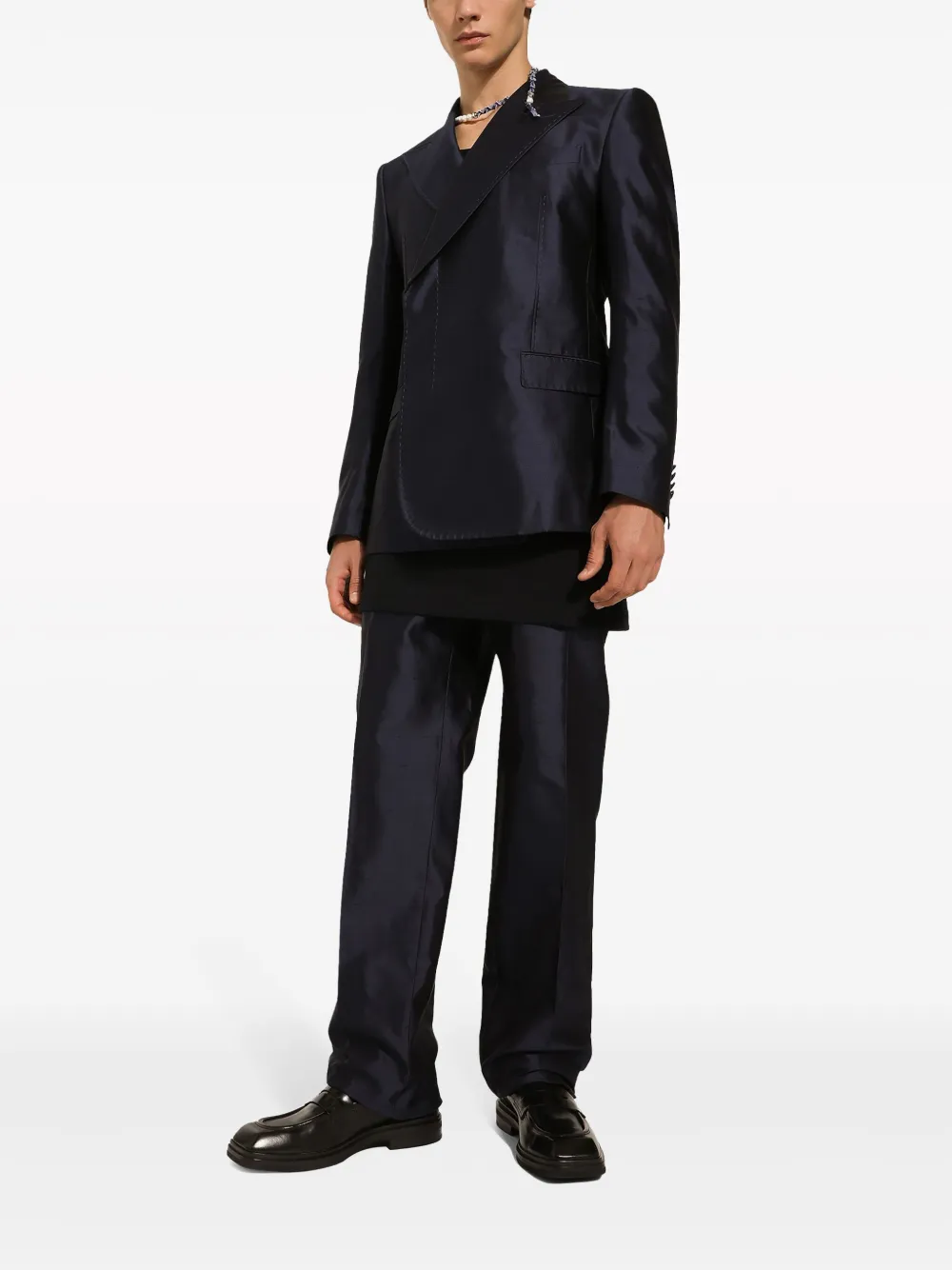 Двубортный пиджак из шелка DOLCE & GABBANA, синий