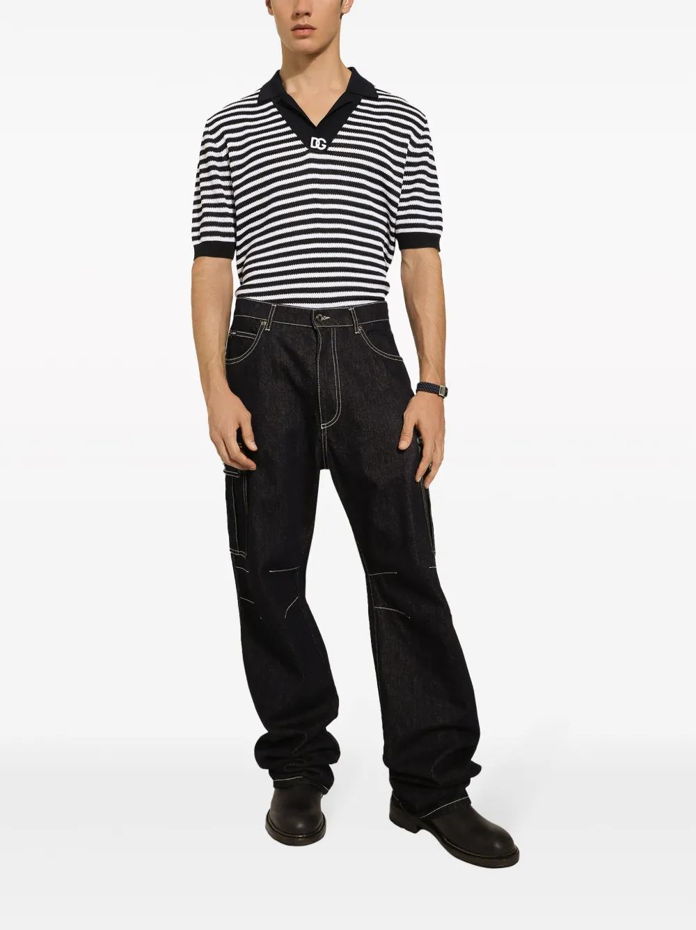 Полосатая рубашка поло DOLCE & GABBANA, синий