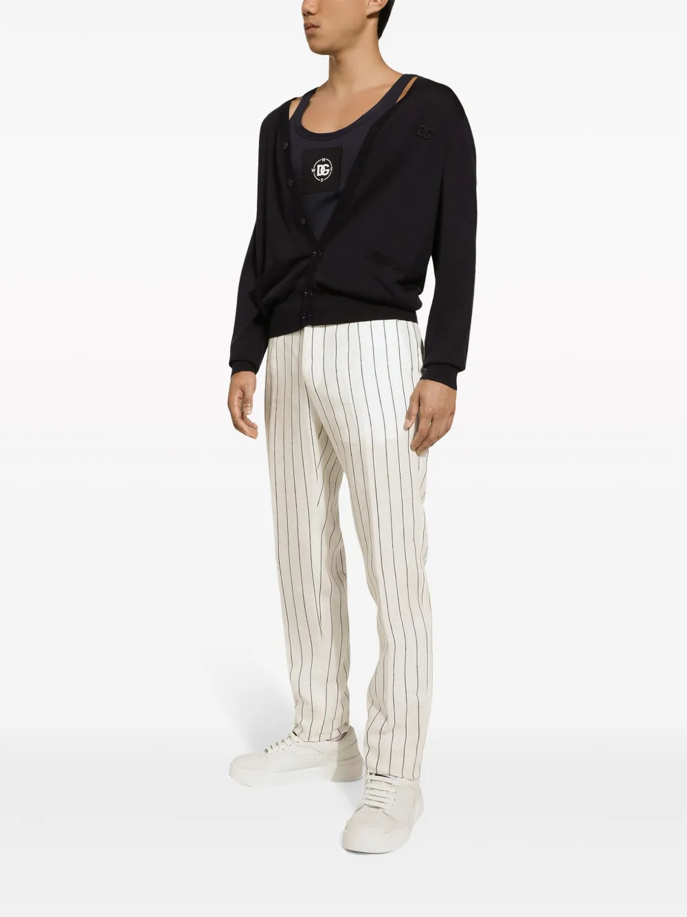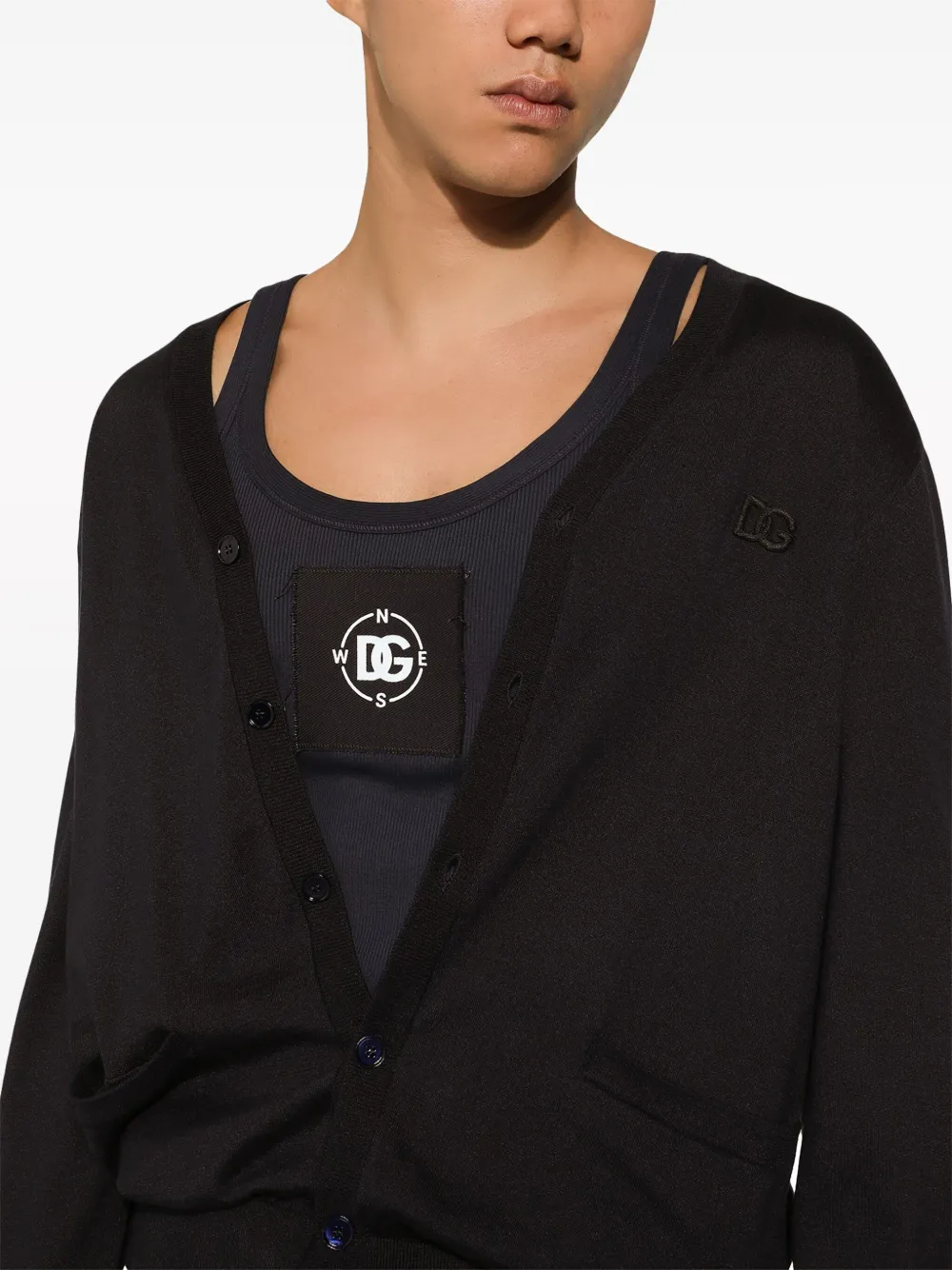 Шелковый кардиган с вышитым логотипом DOLCE & GABBANA, синий
