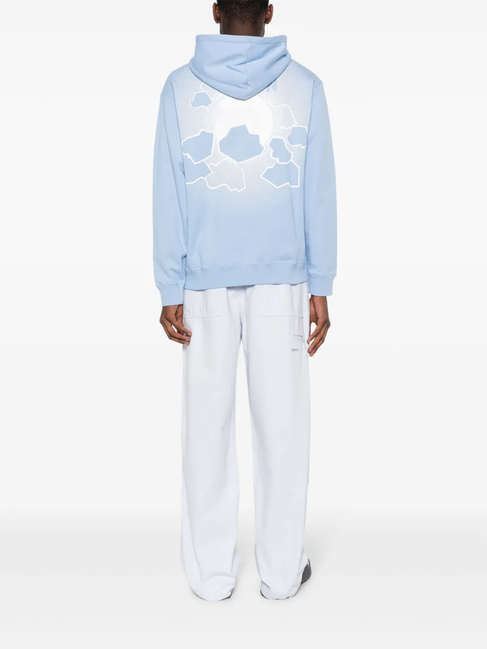 Синий/белый, хлопок, принт с логотипом на груди, графичный принт на спине, затягивающийся на шнурок капюшон, карман-муфта, длинные рукава и прямой подол.