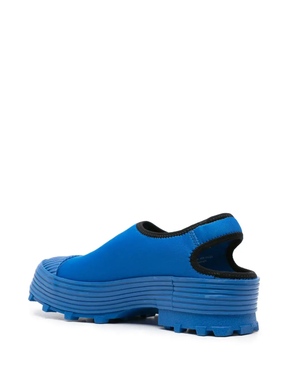 Синий, стелька с логотипом, ремешок на пятке, закругленный носок, резиновый носок, рифленая резиновая подошва и блочный каблук средней высоты. Это унисекс-модель. Обратите внимание, что для нее используется мужская размерная сетка.