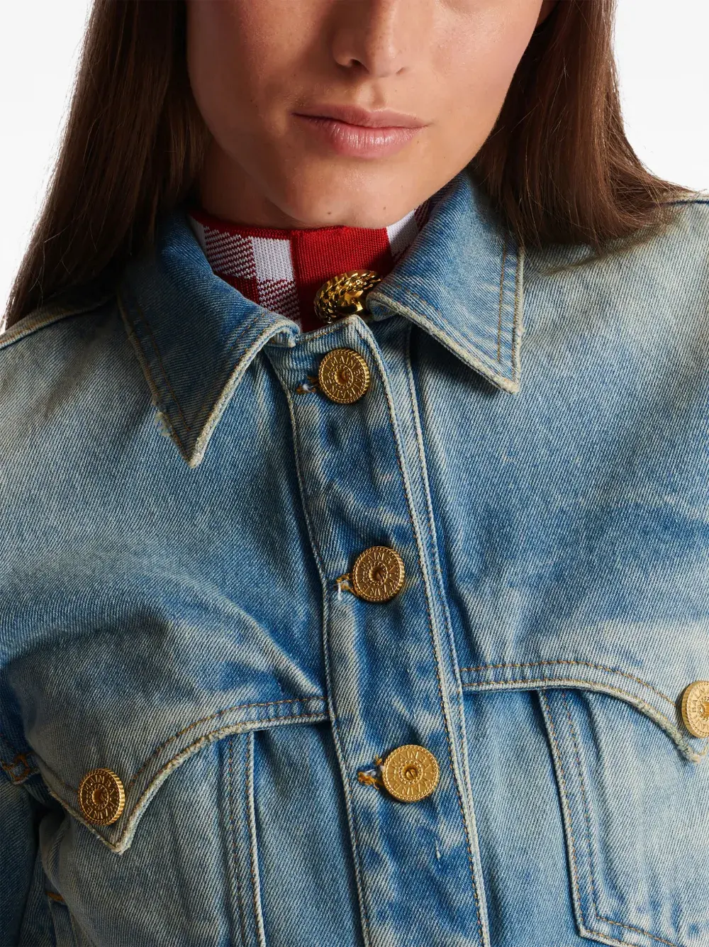 Джинсовая куртка с эффектом потертости BALMAIN, синий