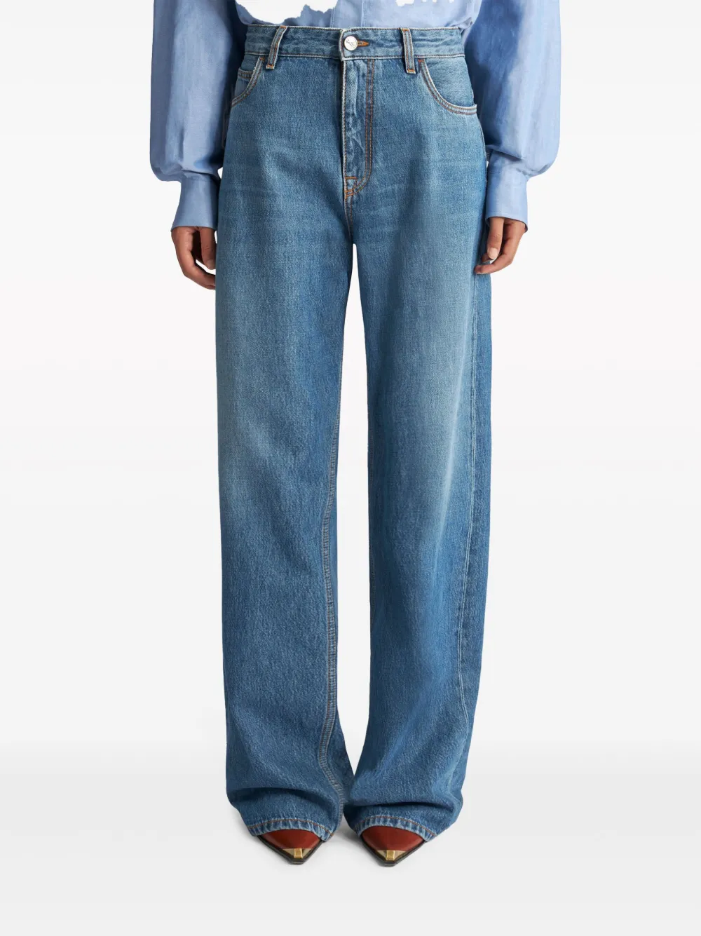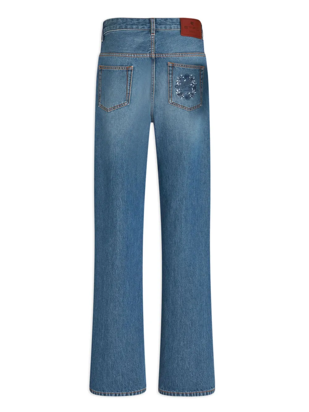 Широкие джинсы с вышивкой Pegaso ETRO, синий