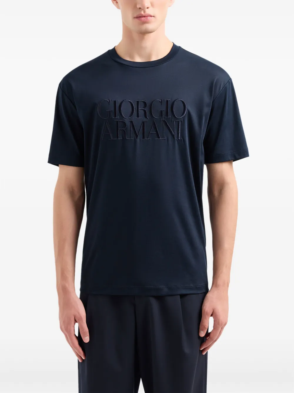 Футболка с вышитым логотипом GIORGIO ARMANI, синий