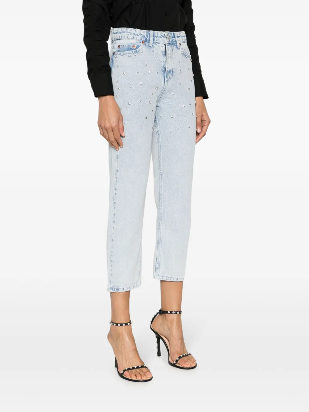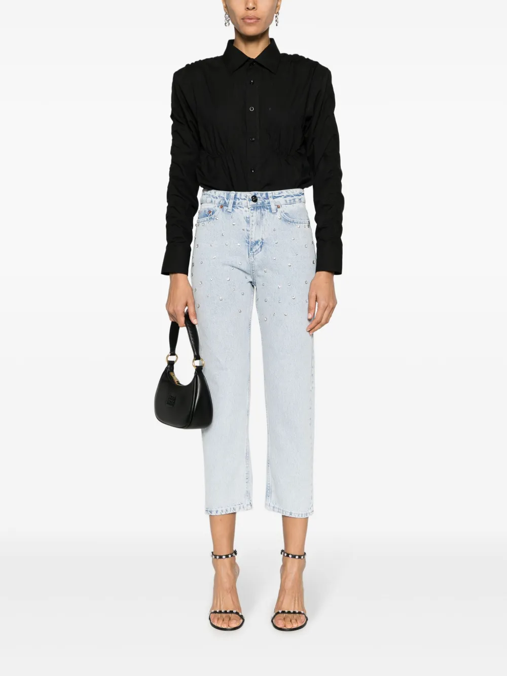 Укороченные джинсы с кристаллами Ana Radu, синий