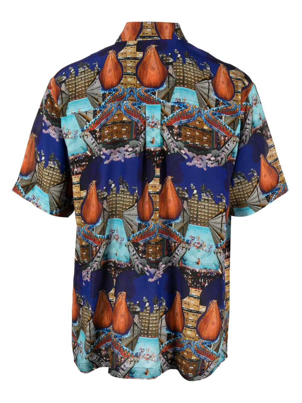 Креповая рубашка Transfered с графичным принтом Henrik Vibskov, синий 56 510₽