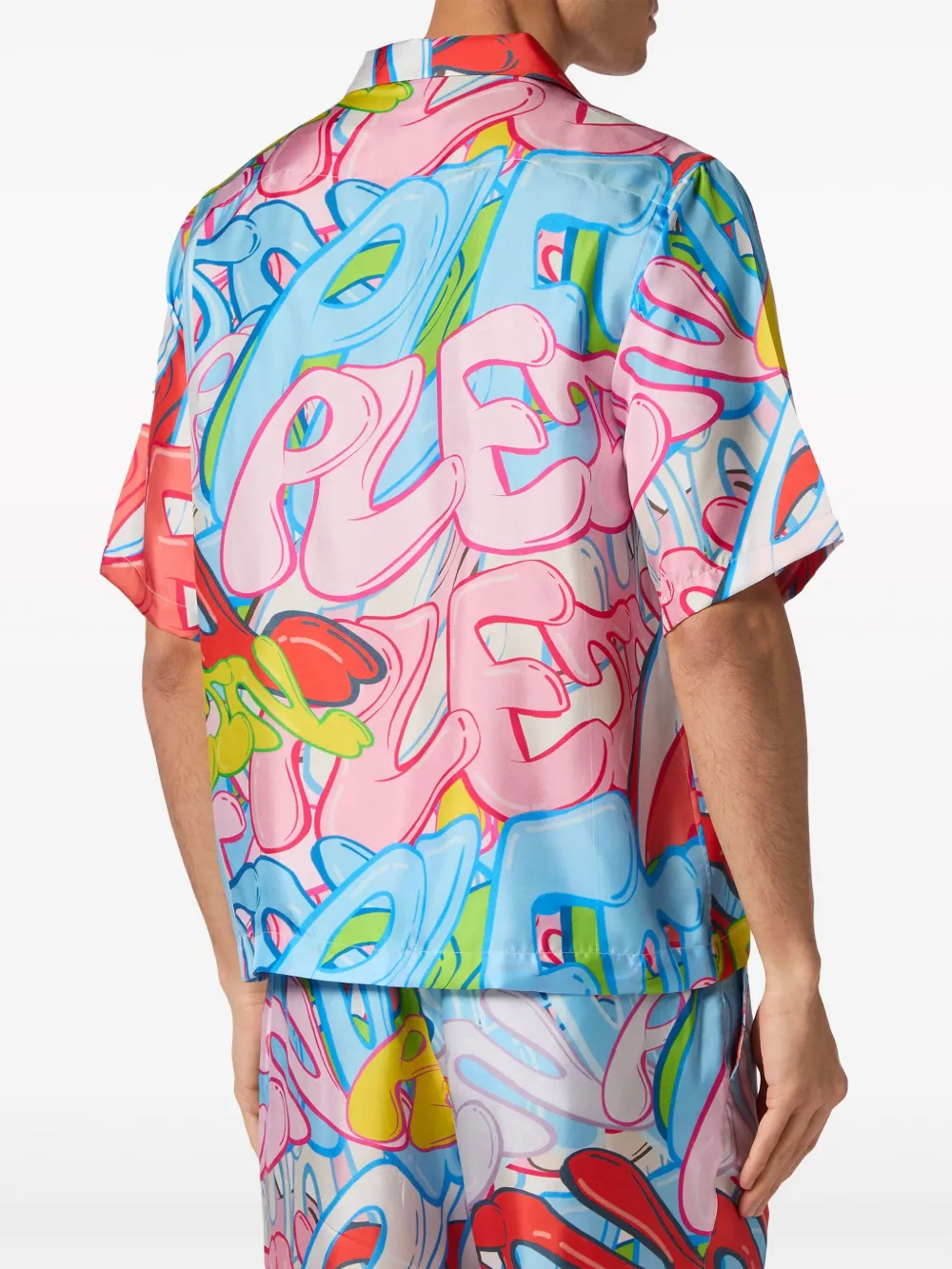Шелковая рубашка Bombing Graffiti Philipp Plein, синий