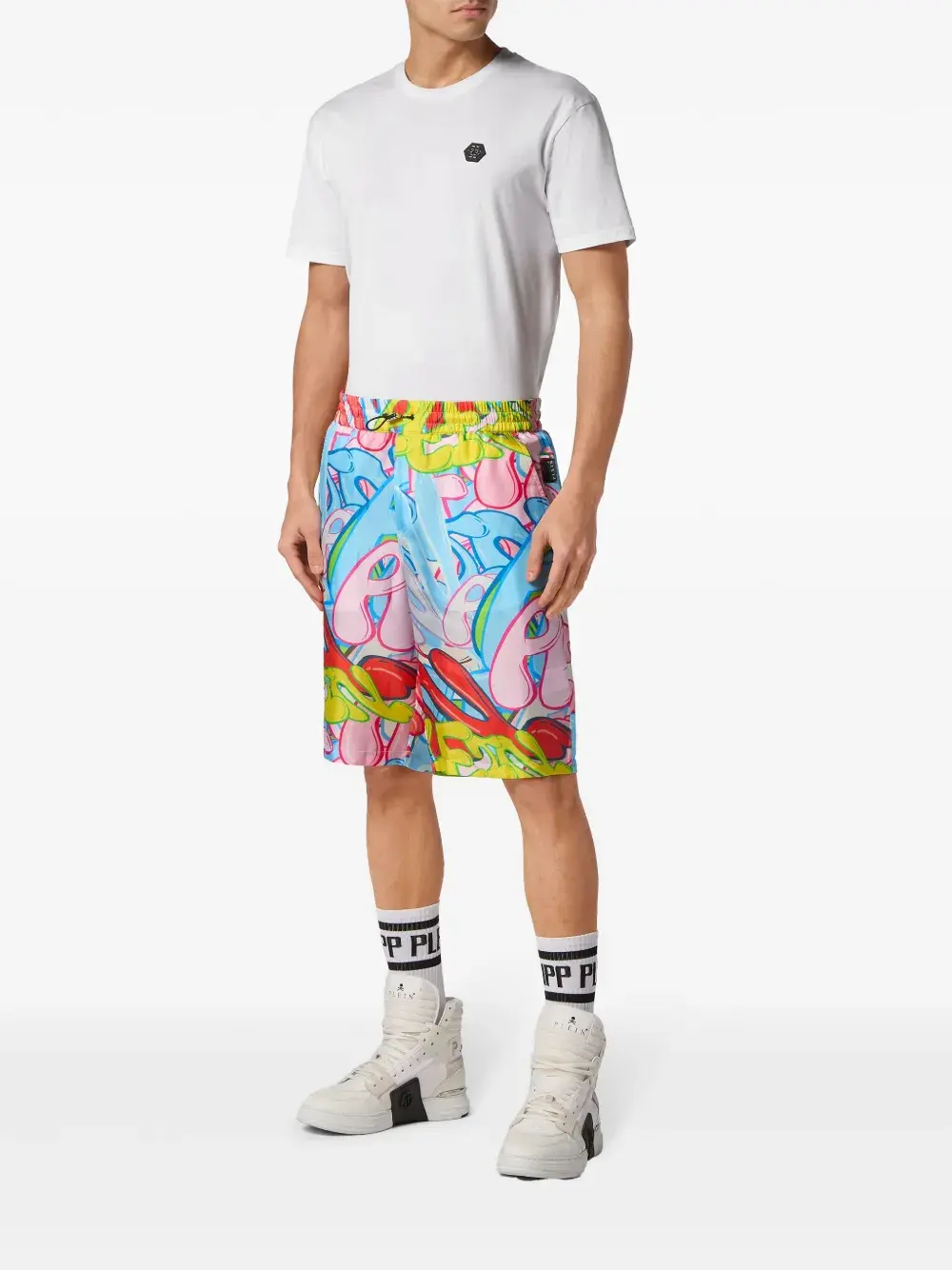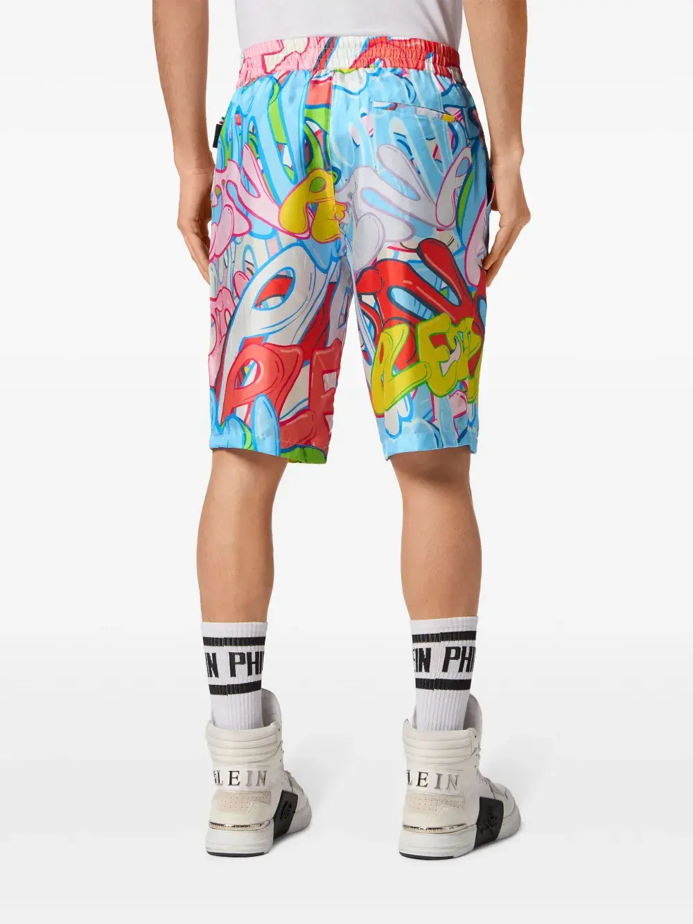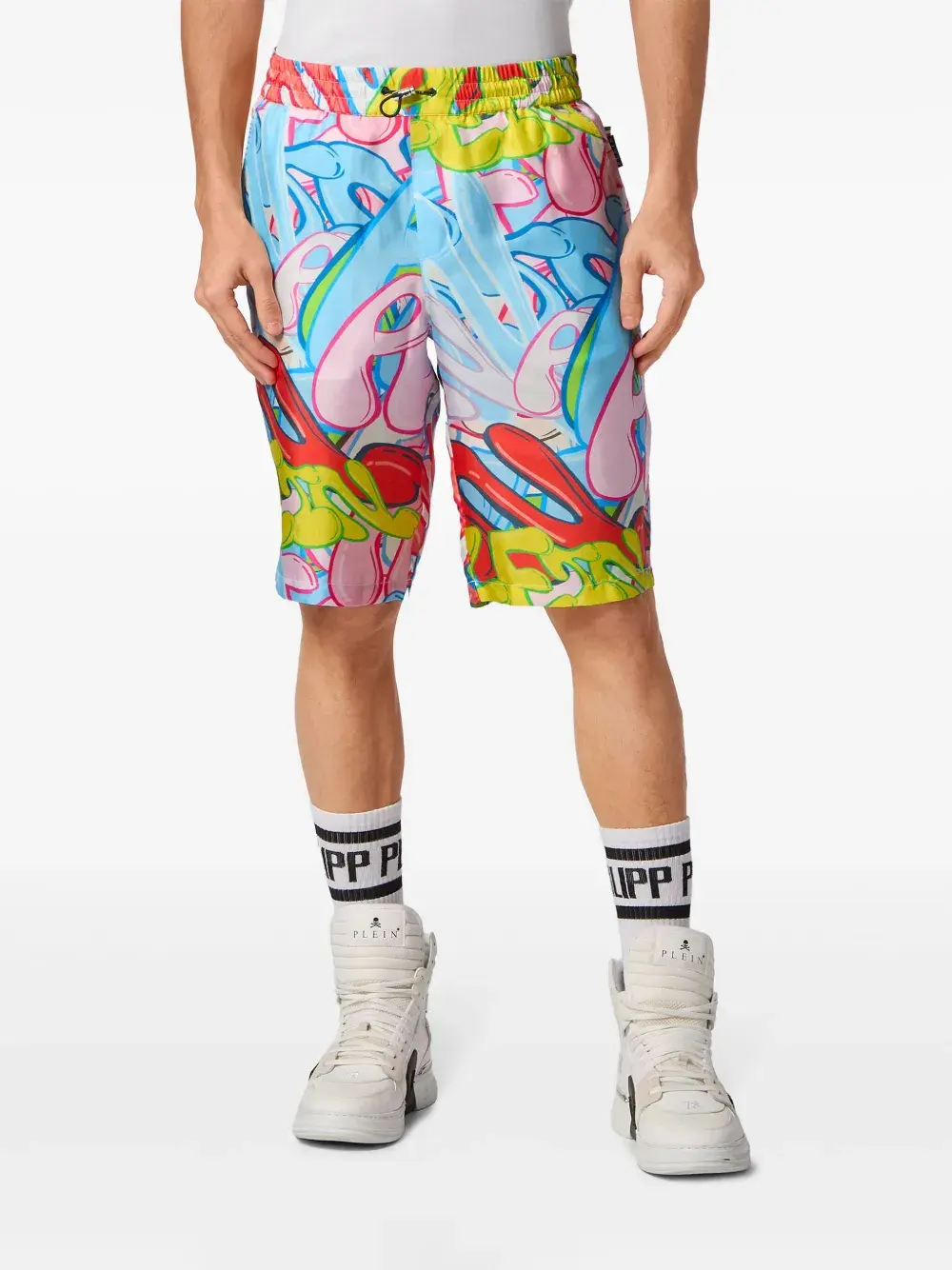 Шелковые шорты-бермуды Bombing Graffiti Philipp Plein, синий