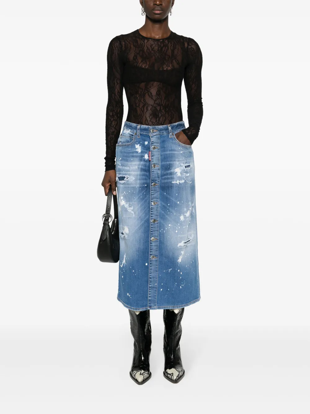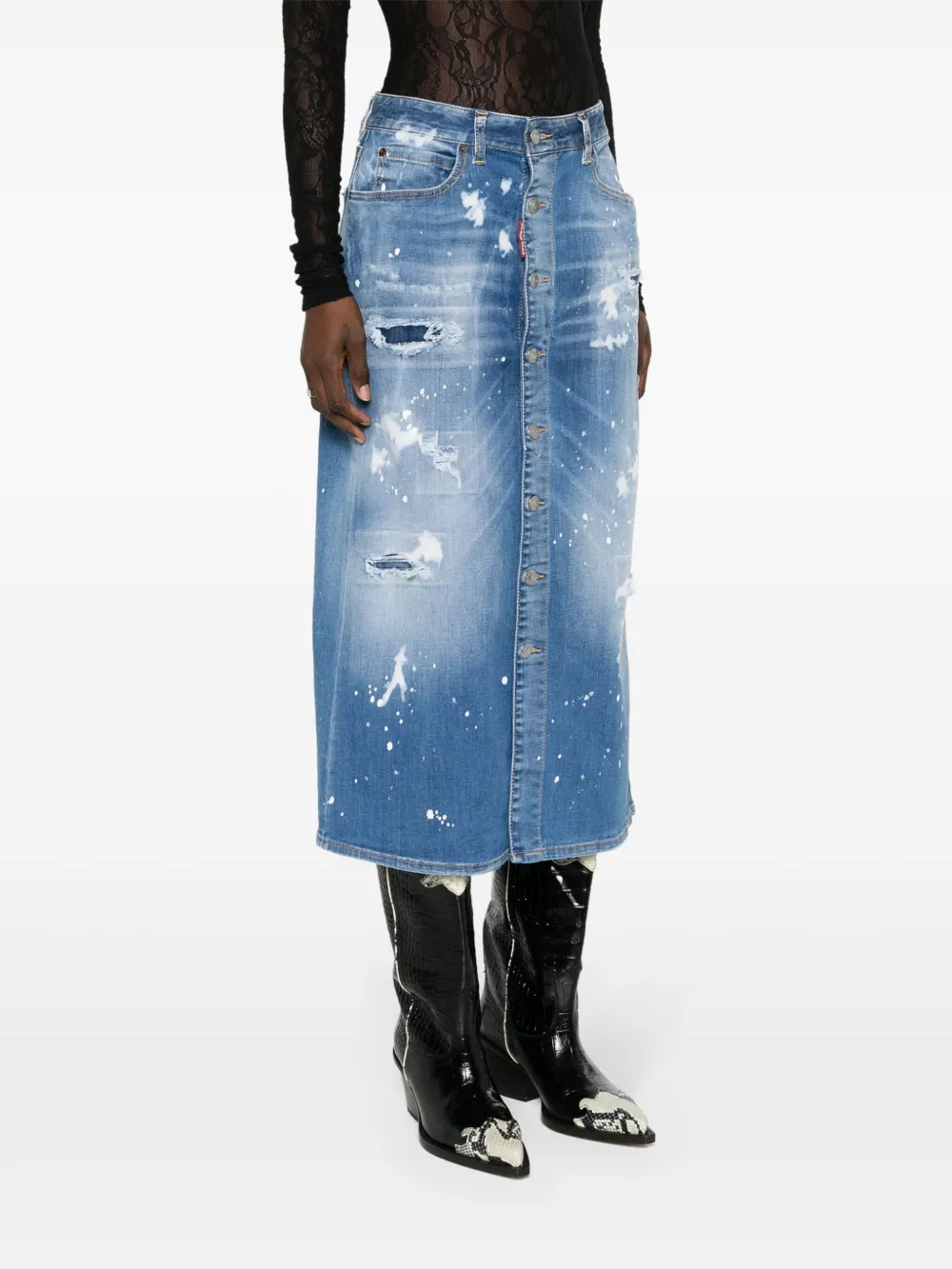 Джинсовая юбка мини с эффектом потертости DSQUARED2, синий