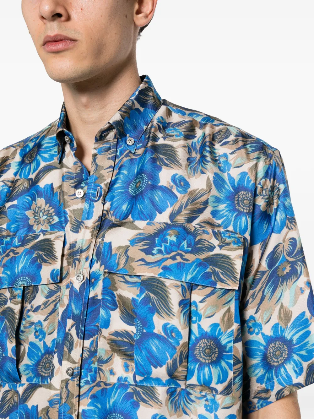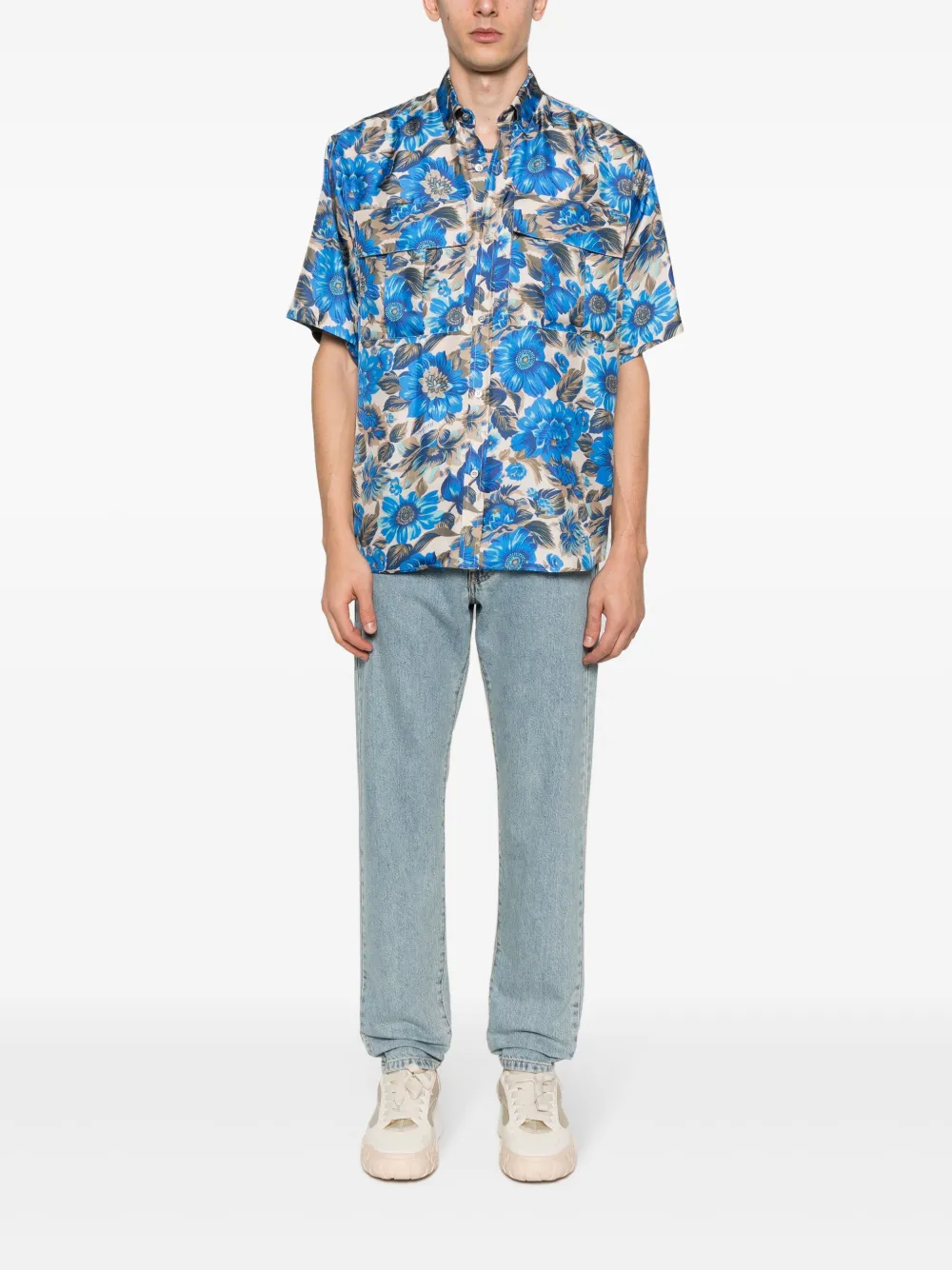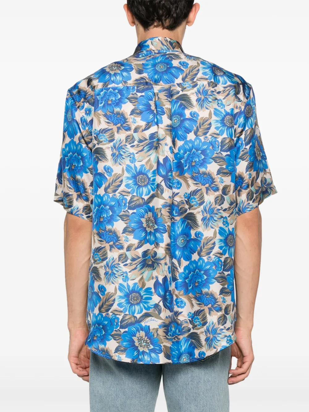 Шелковая рубашка с цветочным принтом Moschino, синий