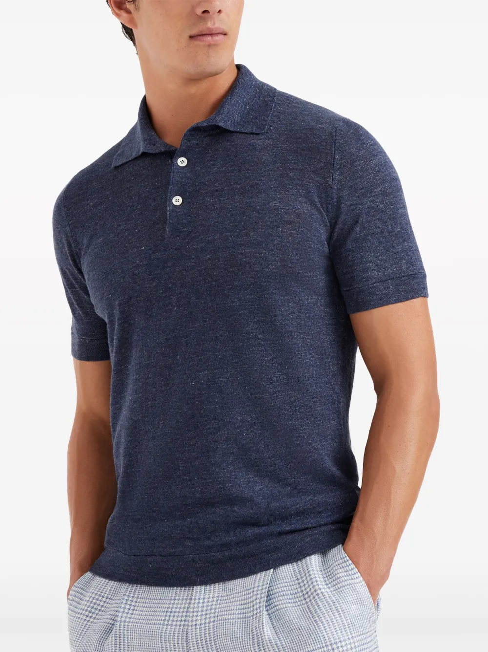 Рубашка поло с воротником в рубчик Brunello Cucinelli, синий