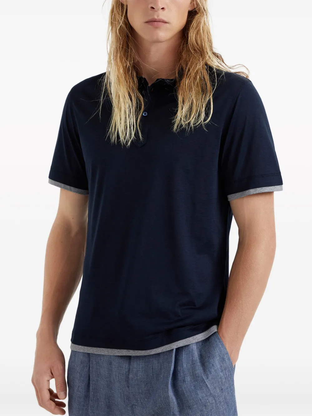 Многослойная рубашка поло Brunello Cucinelli, синий