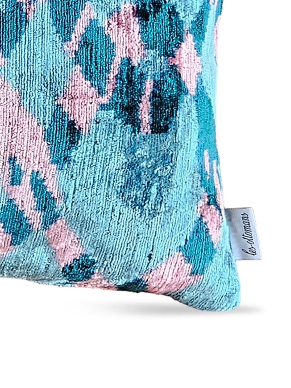 Бархатная подушка с геометричным узором Les-Ottomans, синий