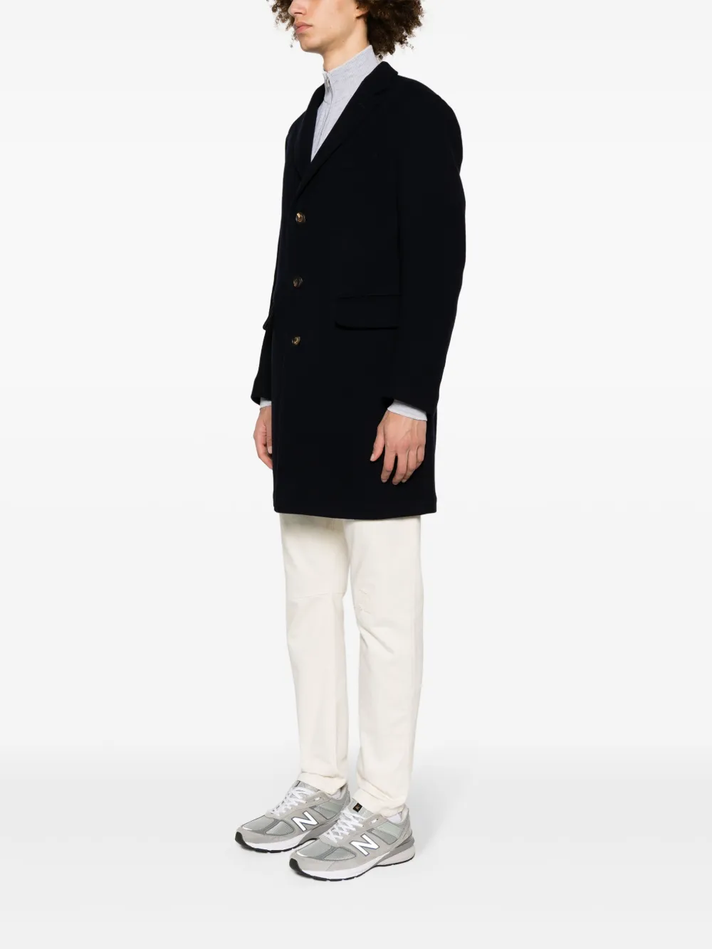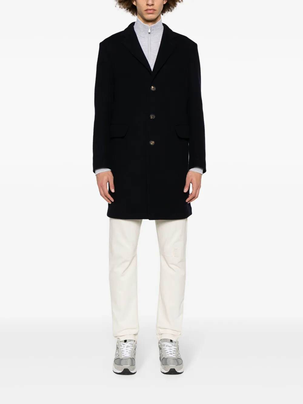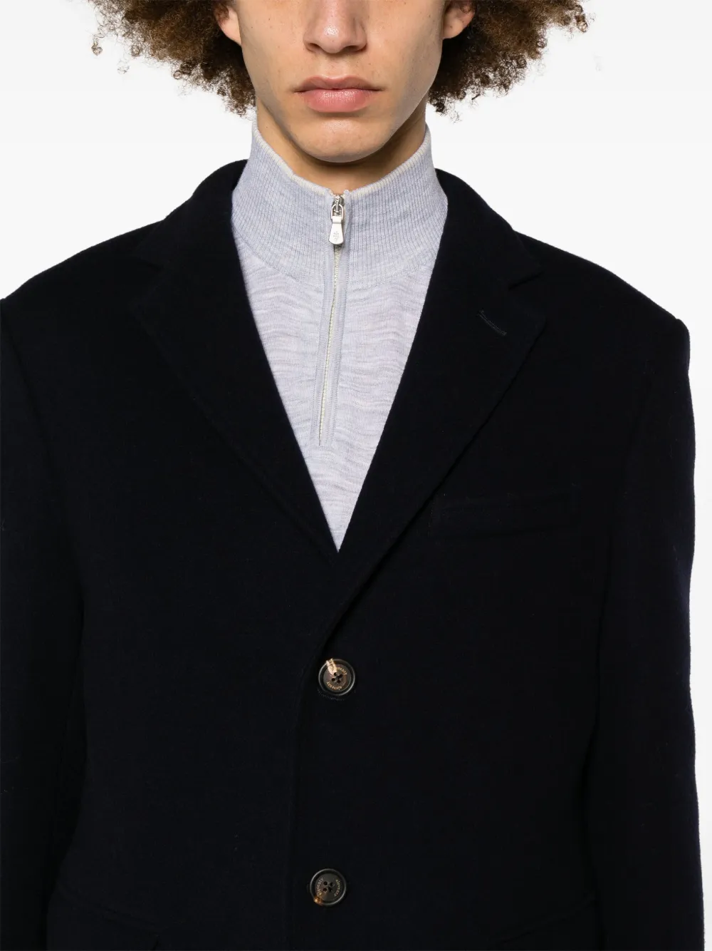 Подробнее о товаре: • темно-синий • смесовая шерсть • эффект войлока • зазубренные лацканы • застежка на пуговицах спереди • длинные рукава • прорезной карман на груди • два передних кармана с клапанами • внутренний накладной карман • два внутренних прорезных кармана • внутренняя вставка с логотипом • внутренняя бирка с именем • шлица по центру сзади • прямой подол • частичная подкладка
