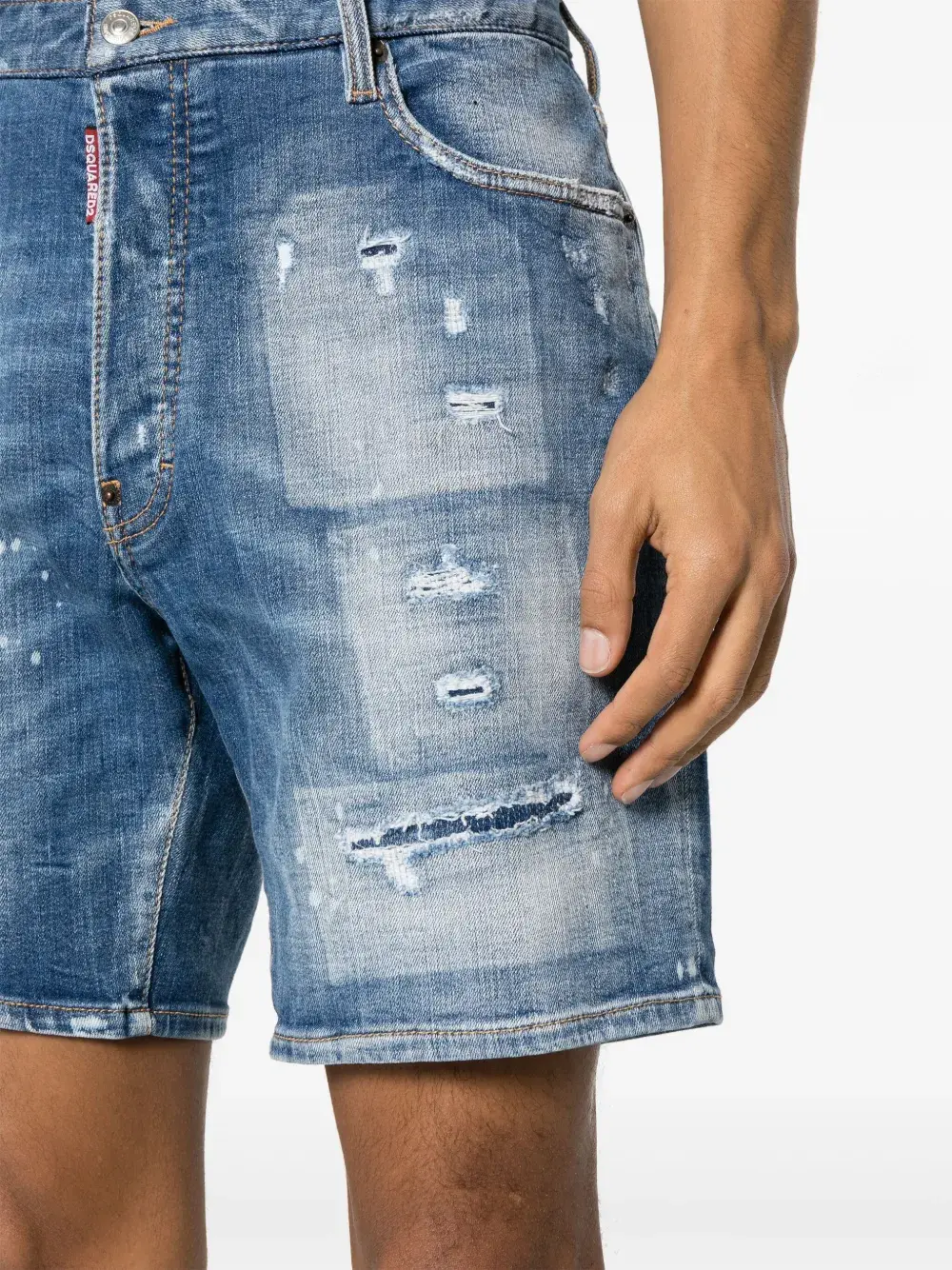 Джинсовые шорты с эффектом потертости DSQUARED2, синий