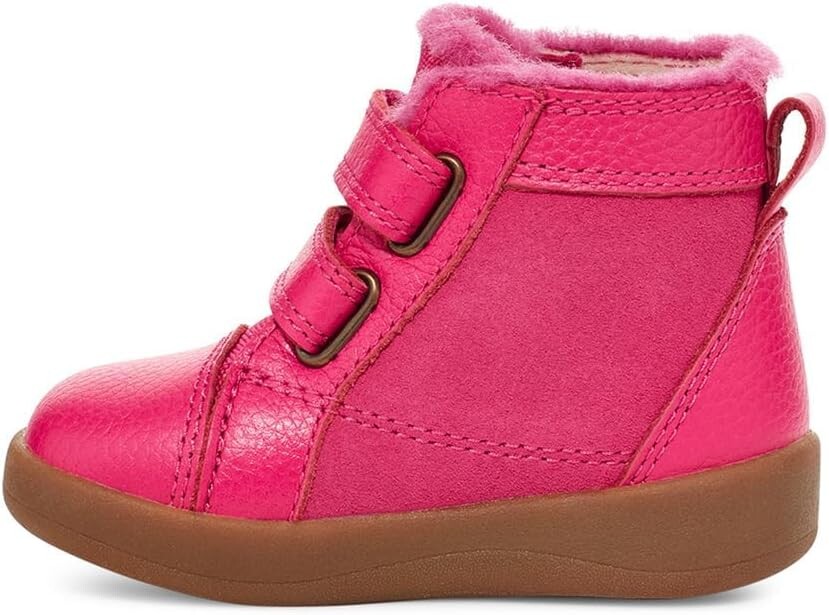 Ботинки для малышей из натуральной кожи и замши с подкладкой из шерсти, на резиновой подошве, застегиваются на липучки.