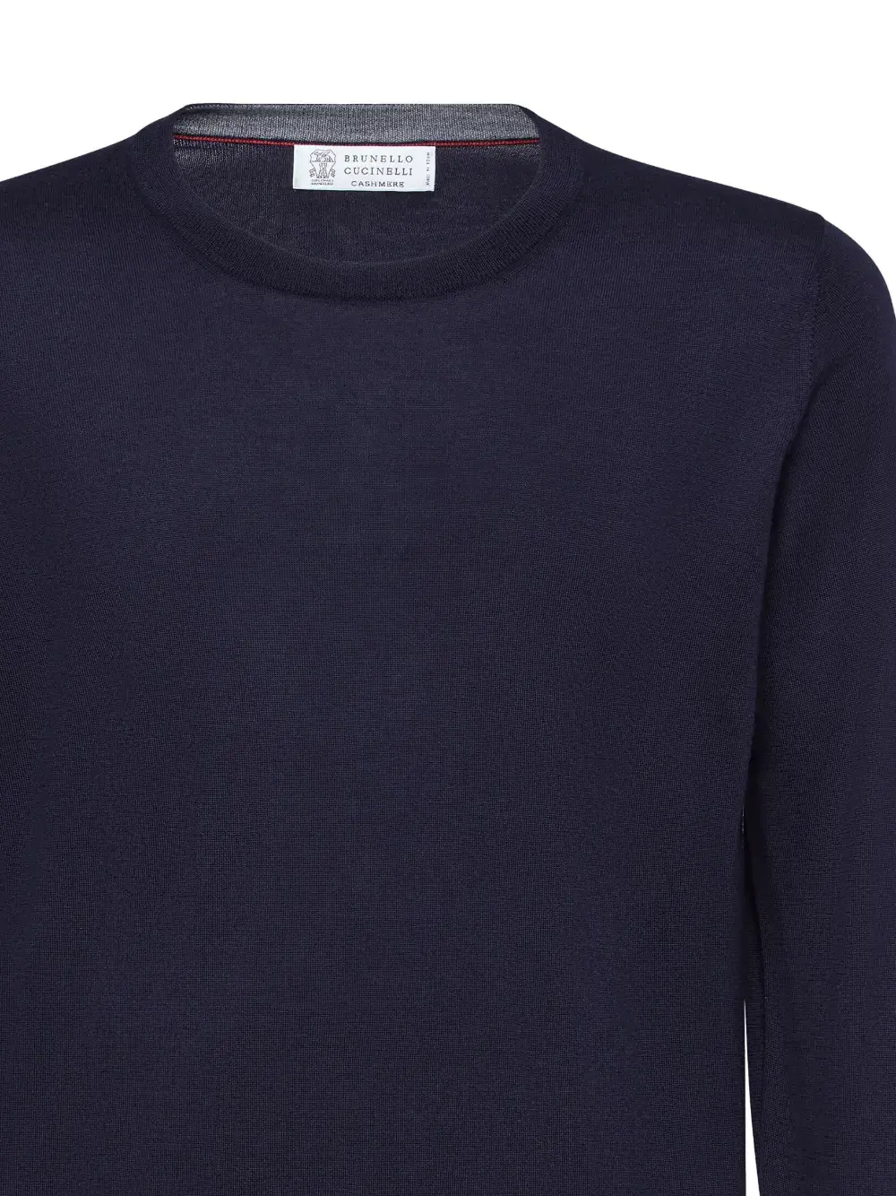Темно-синий свитер из микса шелка и кашемира с круглым вырезом от Brunello Cucinelli(Брунелло Кучинелли).