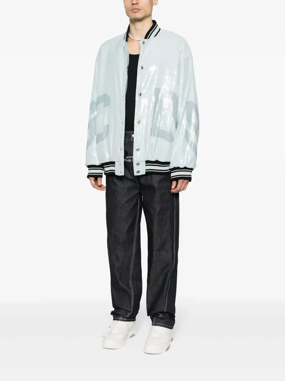 Бомбер Sequins Varsity Logo GCDS, синий 70 530₽