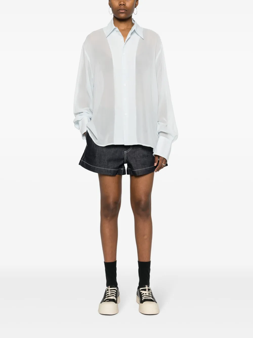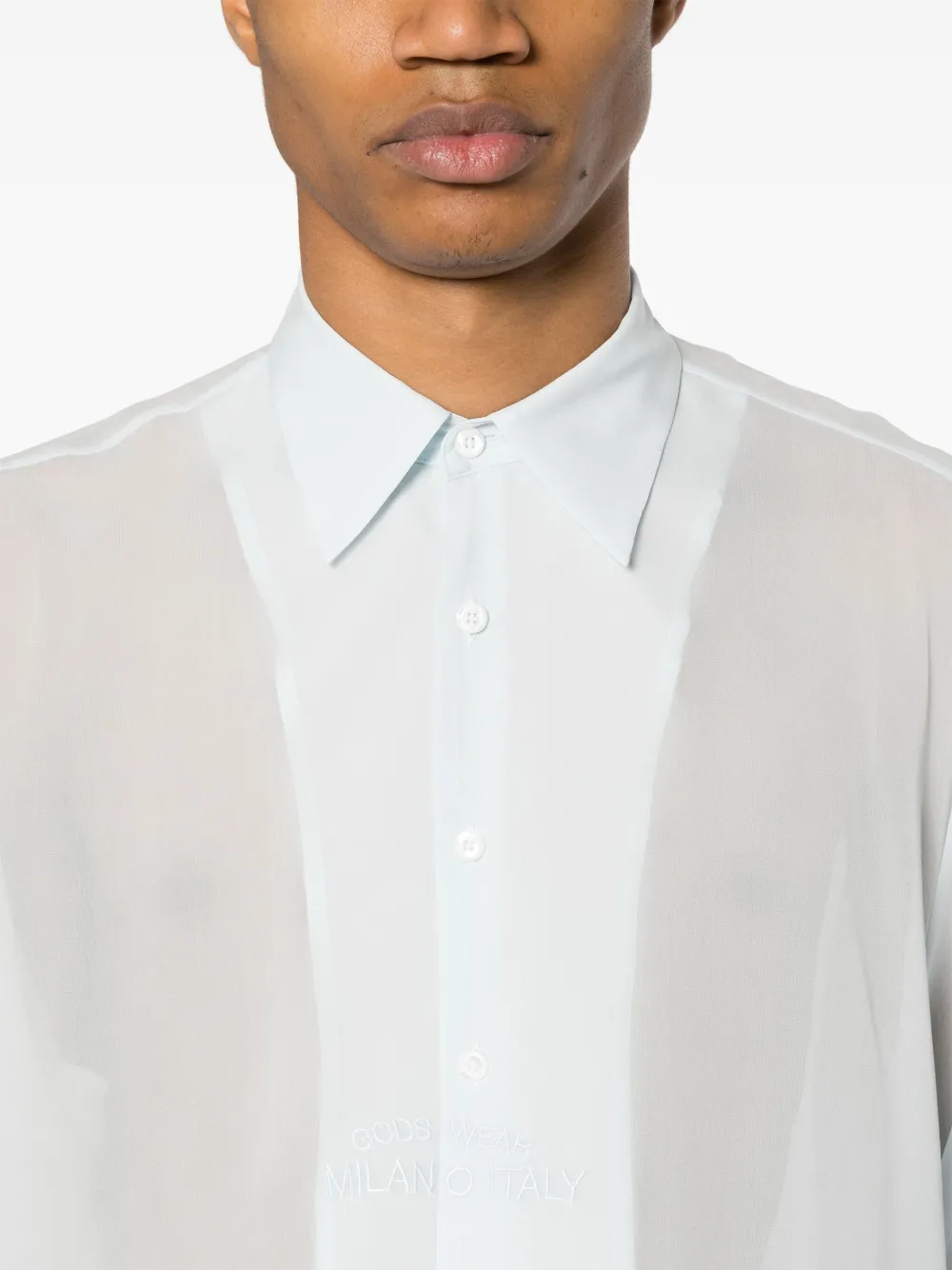 Шелковая рубашка с вышитым логотипом GCDS, синий