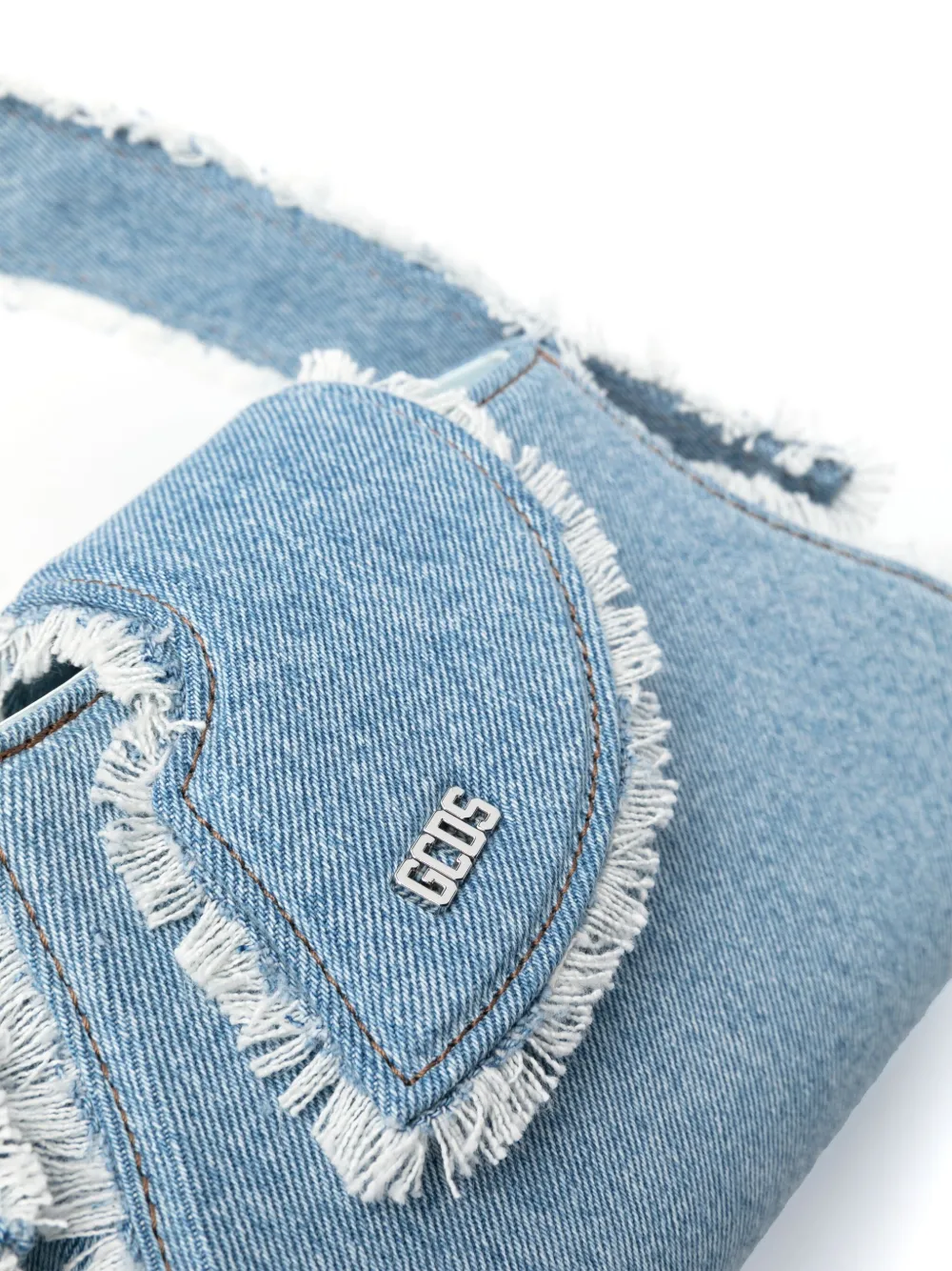 Подробнее о товаре: • синий • ткань с твиловым переплетением • деним • контрастная строчка • необработанные края • серебристый металлический логотип спереди • серебристая фурнитура с выгравированным логотипом • гравировка логотипа • магнитная застежка • ручка с плоским верхом • съемный регулируемый ремень на плечо • металлические ножки • основное отделение • внутреннее отделение для карт • жаккардовая подкладка с логотипом