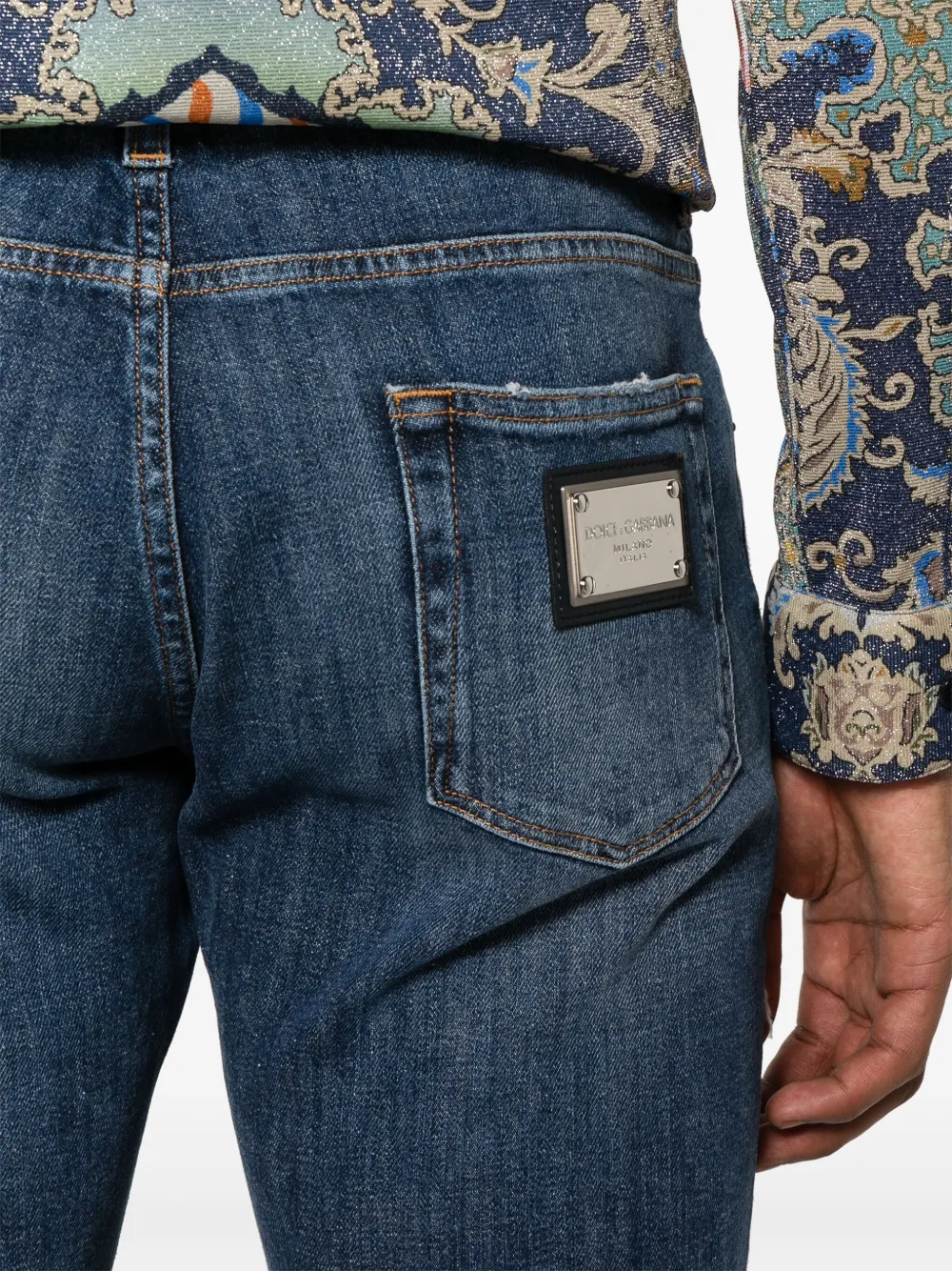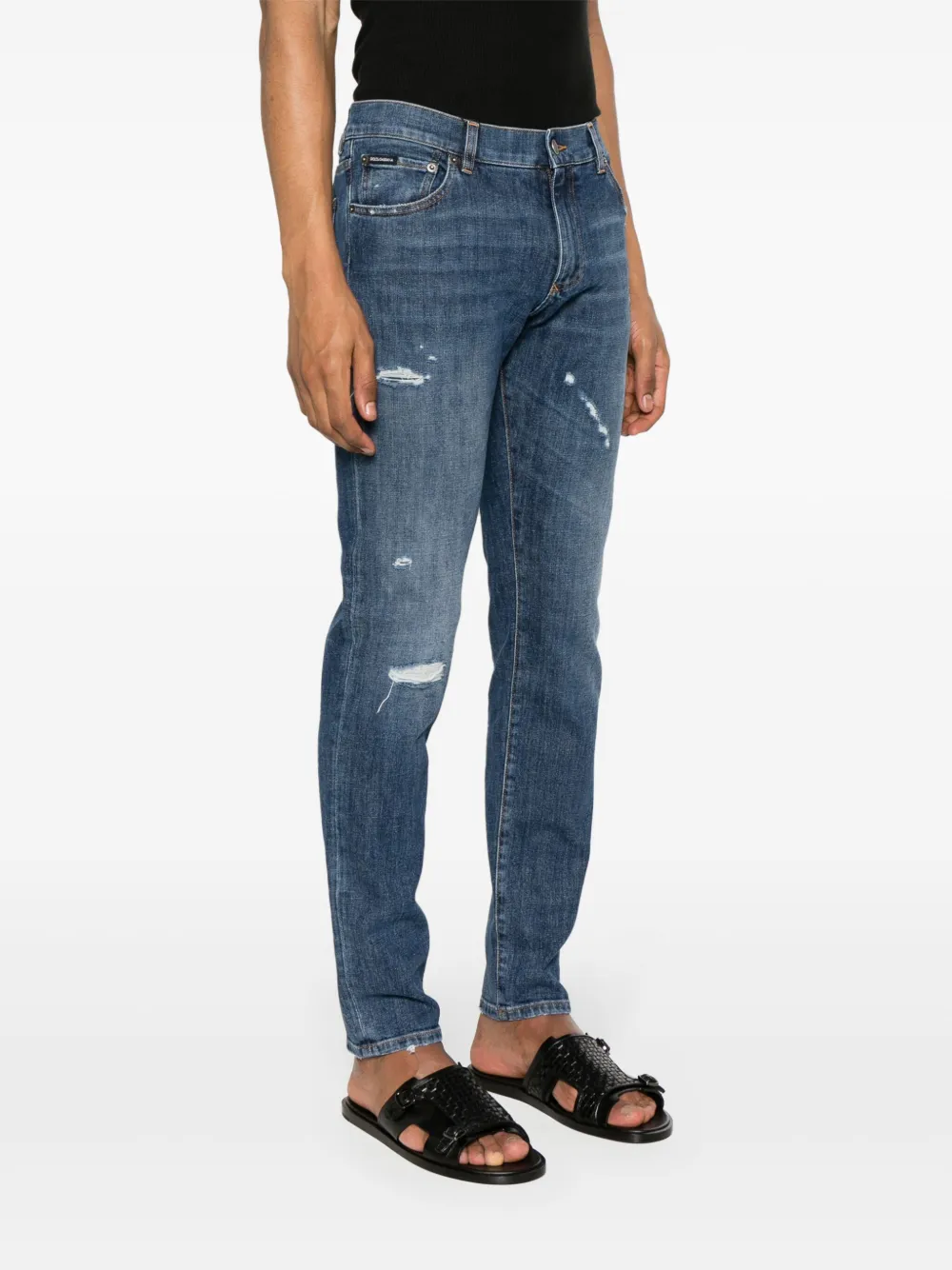 Зауженные джинсы с прорезями DOLCE & GABBANA, синий