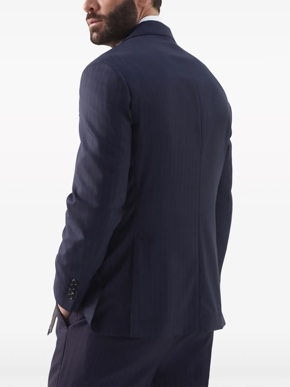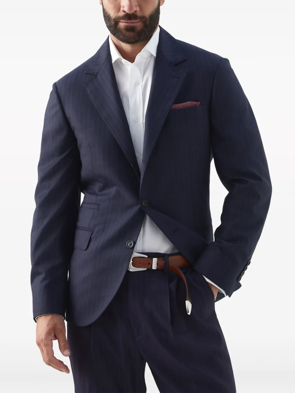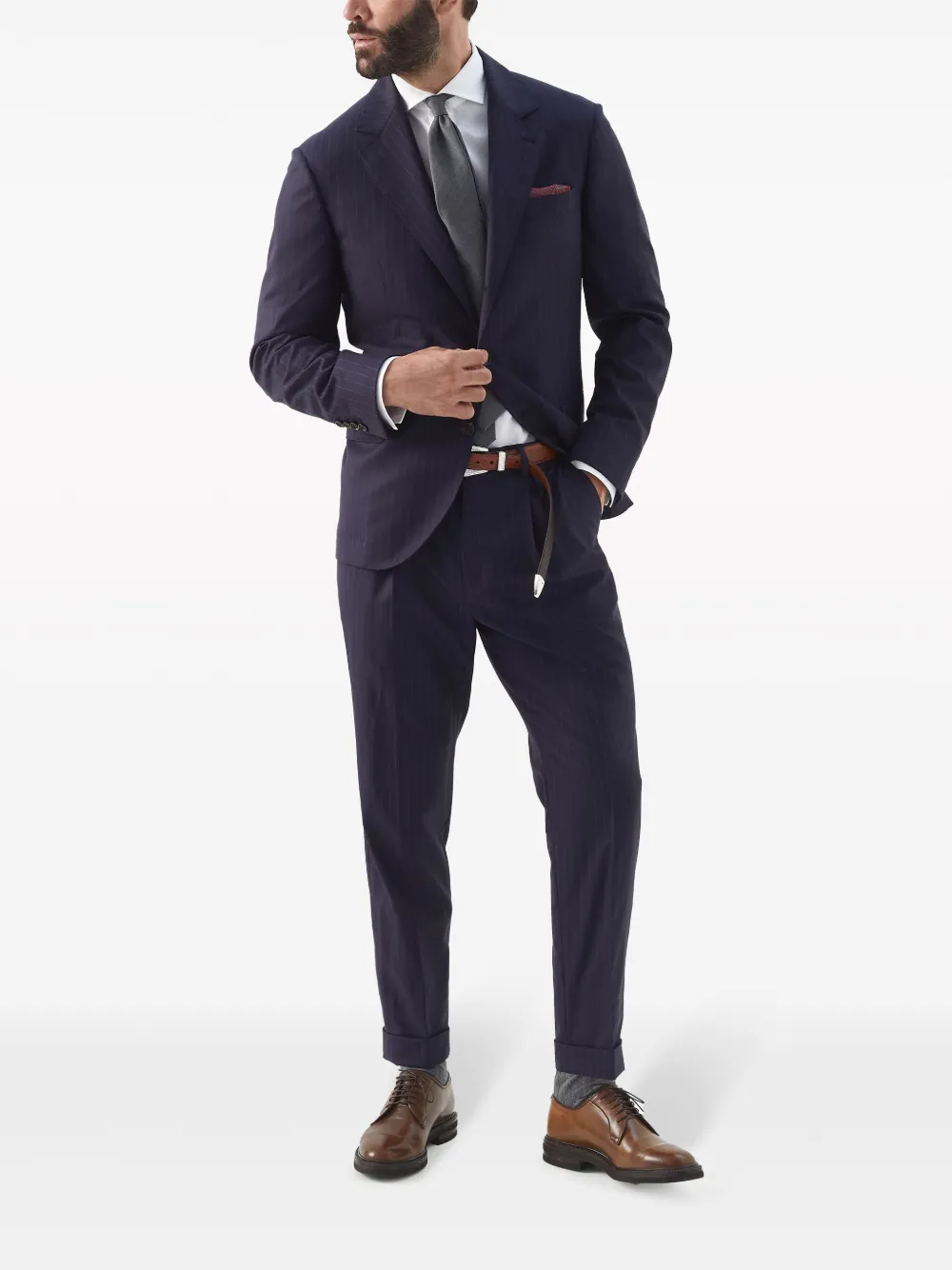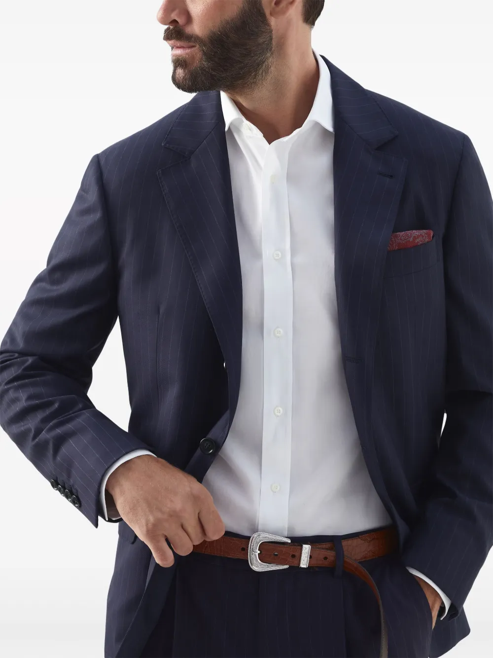 Полосатый пиджак из вирджинской шерсти Brunello Cucinelli, синий