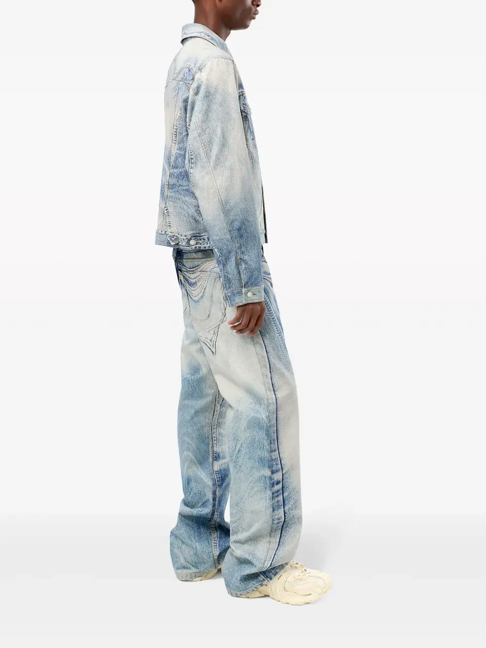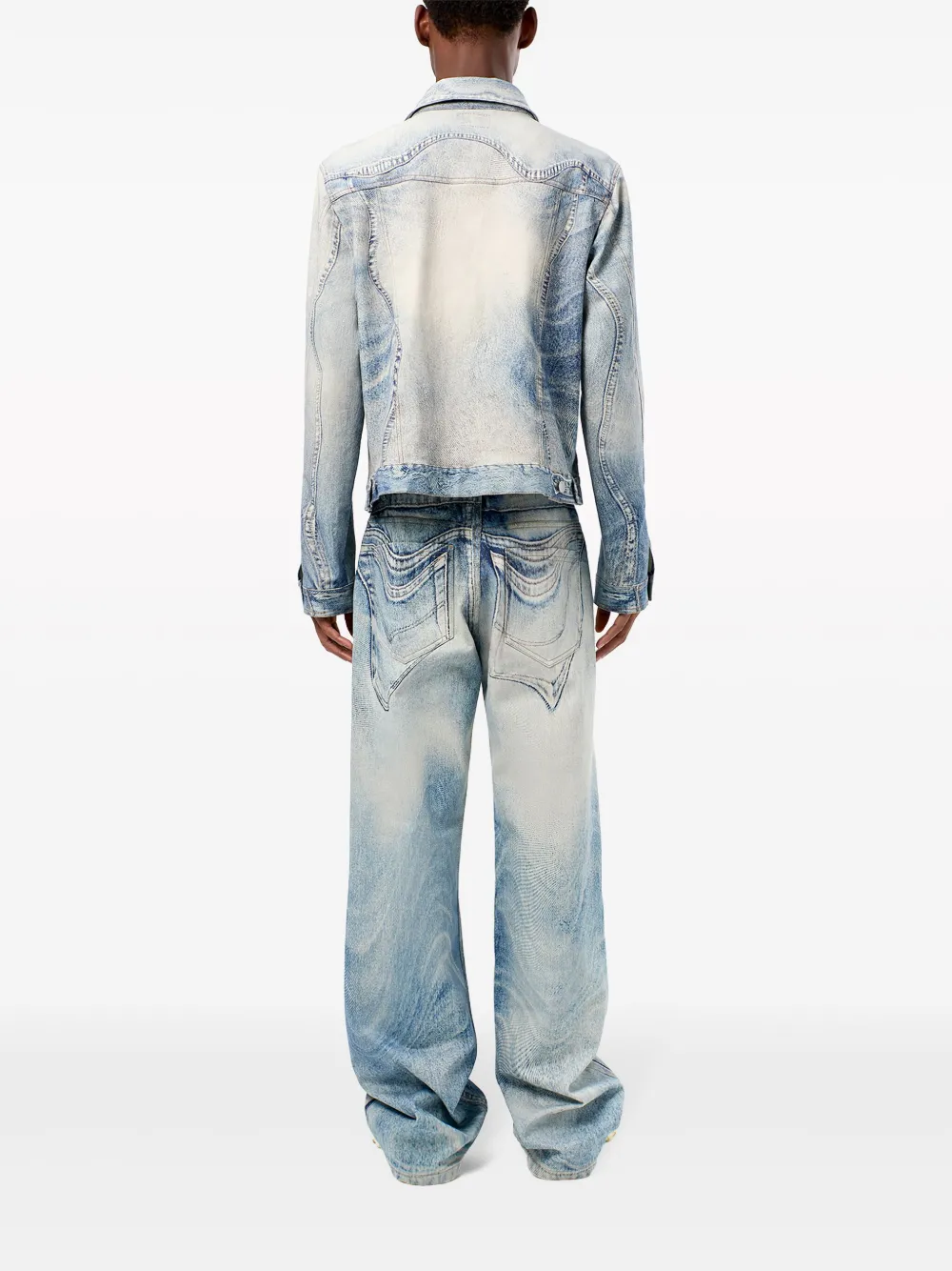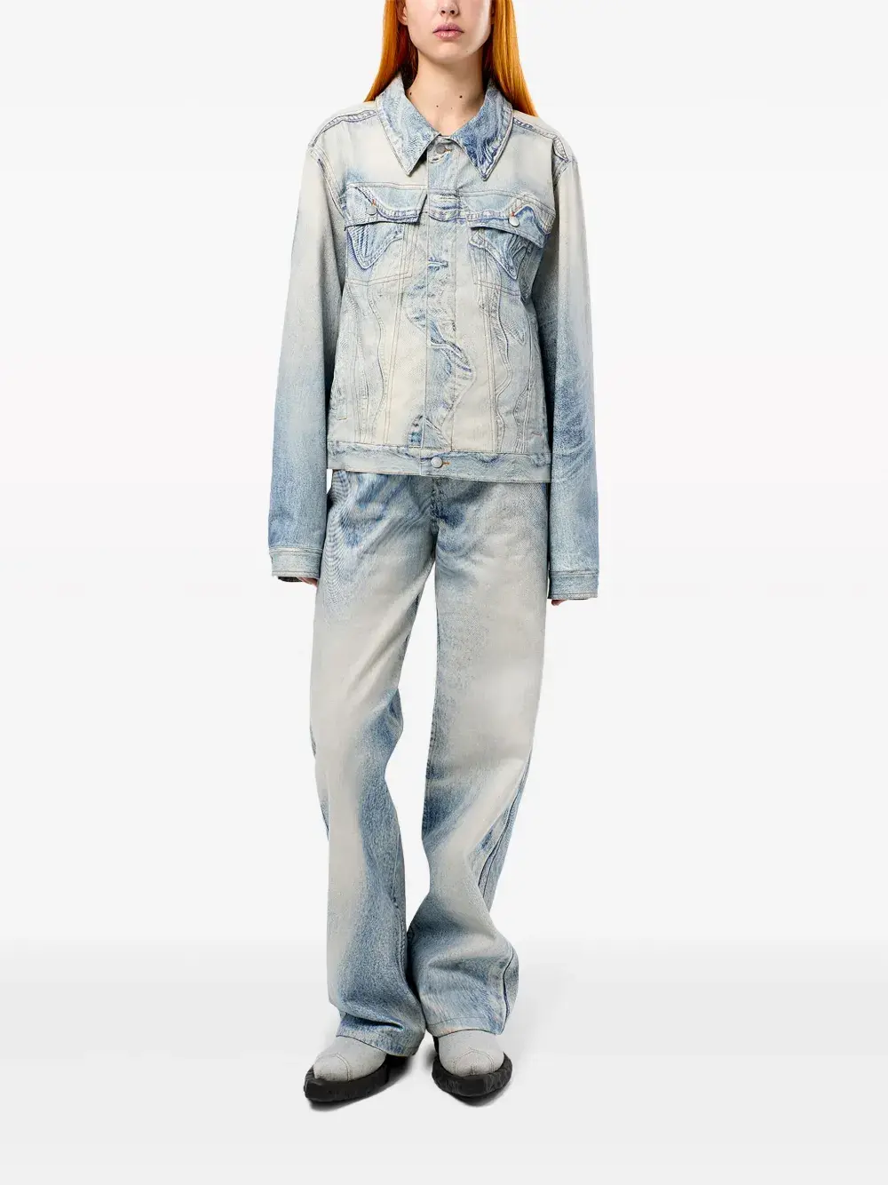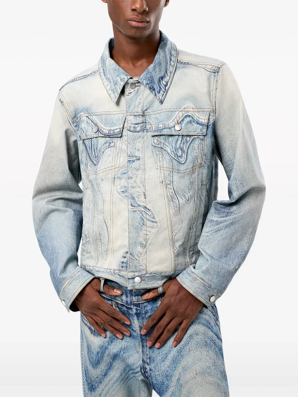 Подробнее о товаре: • голубой • смесь переработанного и органического хлопка • деним • модель из обработанного денима • принт с абстрактным узором • серебристая фурнитура • косой воротник • застежка на пуговицах спереди • длинные рукава • манжеты на пуговицах • два нагрудных кармана на пуговицах • два прорезных кармана сбоку • прямой подол • Это унисекс-модель. Обратите внимание, что для нее используется мужская размерная сетка. • Этот товар как минимум на 50% состоит из переработанных или повторно использованных материалов.