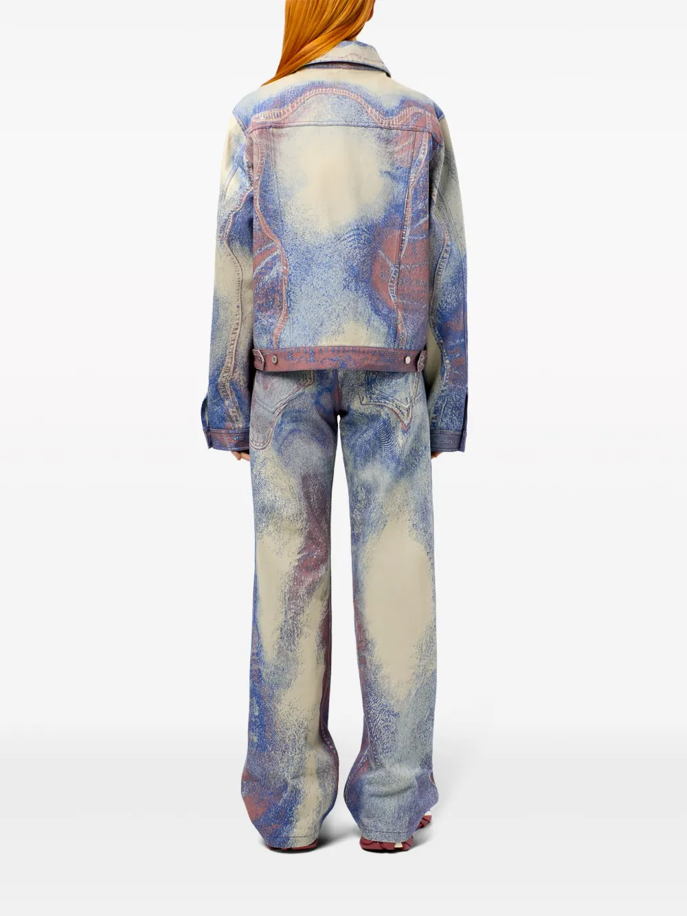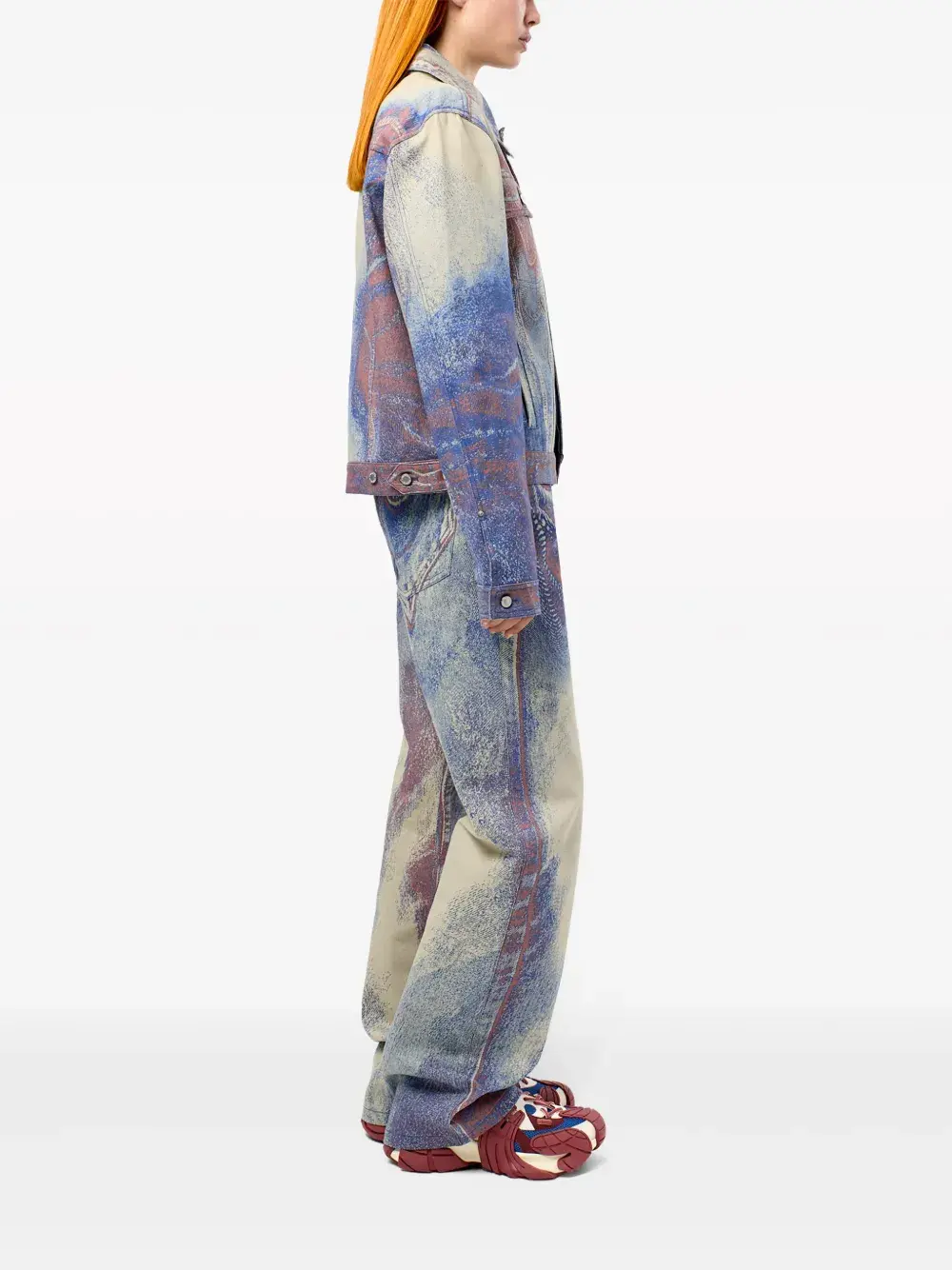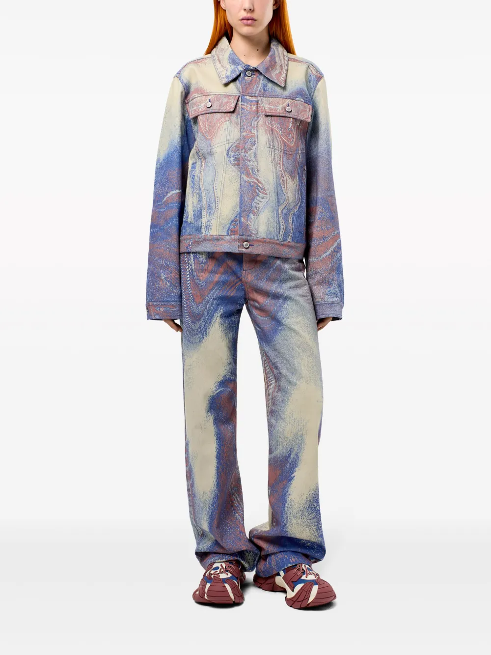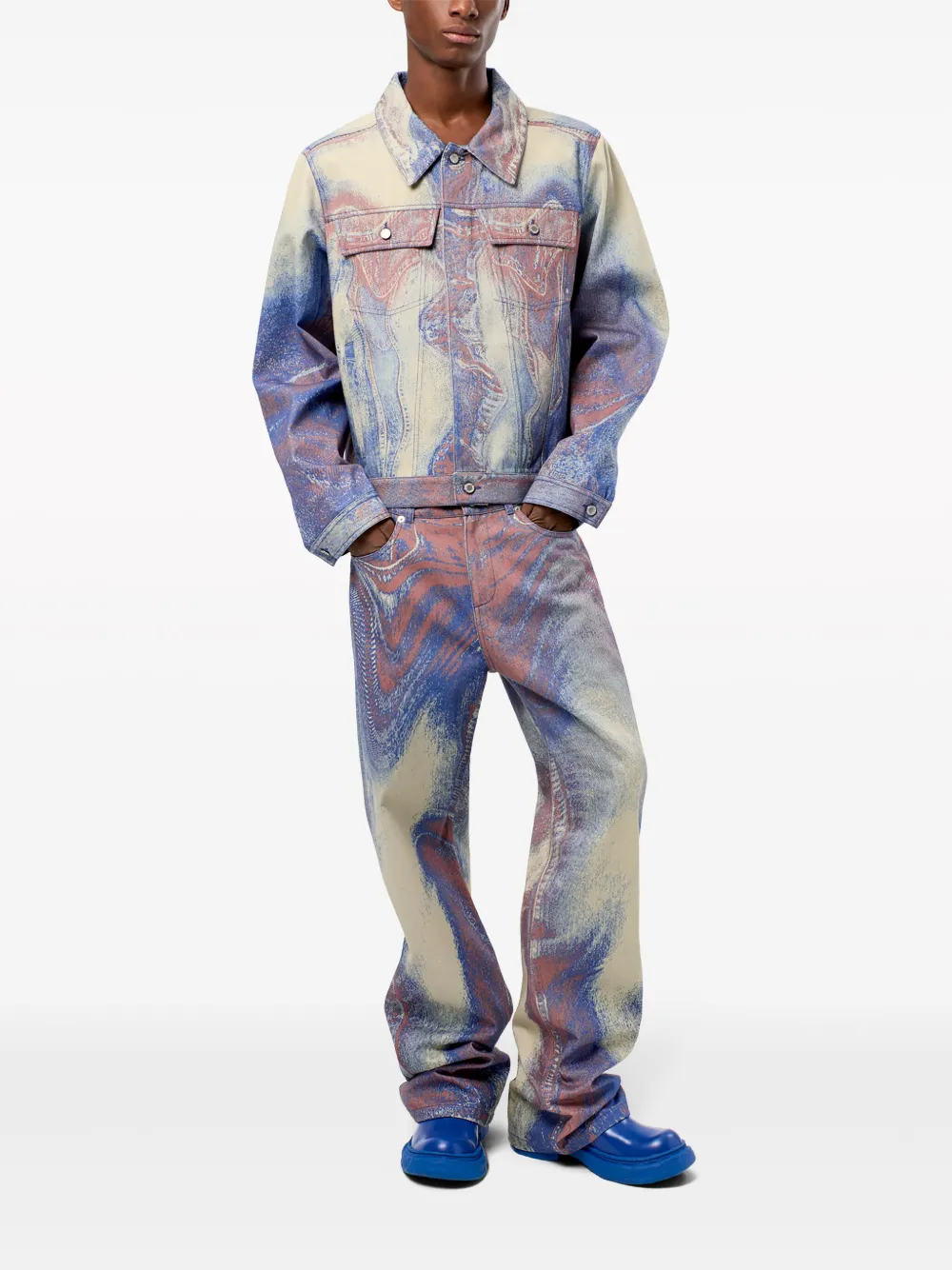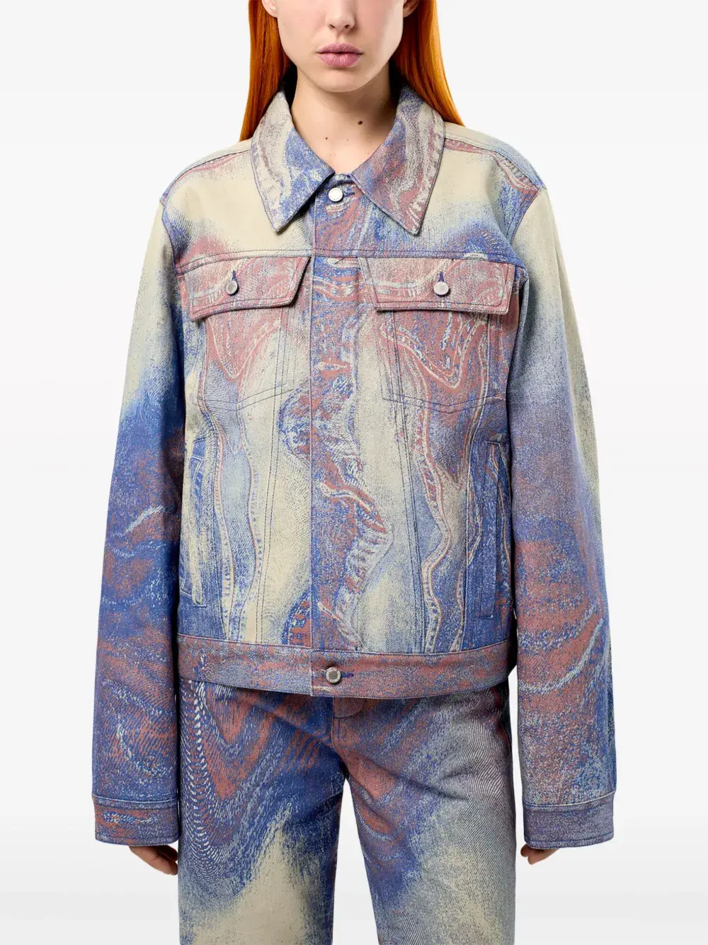 Подробнее о товаре: • синий/разноцветный • смесь переработанного и органического хлопка • деним • принт с абстрактным узором • серебристая фурнитура • косой воротник • застежка на пуговицах спереди • длинные рукава • манжеты на пуговицах • два нагрудных кармана на пуговицах • два прорезных кармана сбоку • прямой подол • Это унисекс-модель. Обратите внимание, что для нее используется мужская размерная сетка.