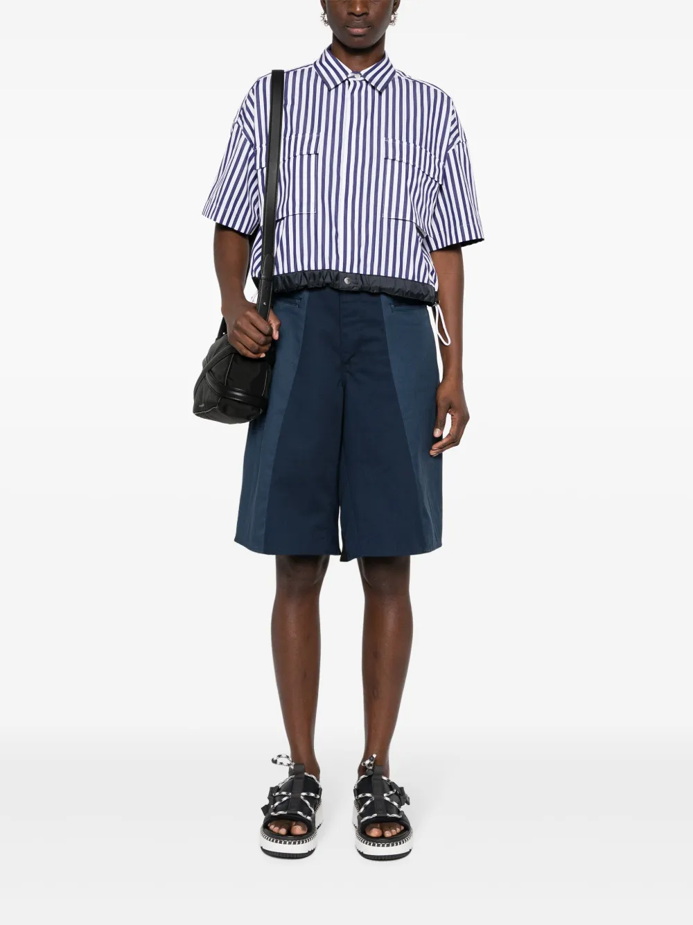 Укороченная блузка в полоску SACAI, синий