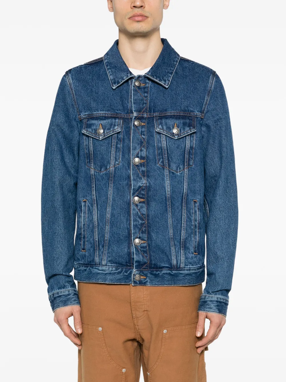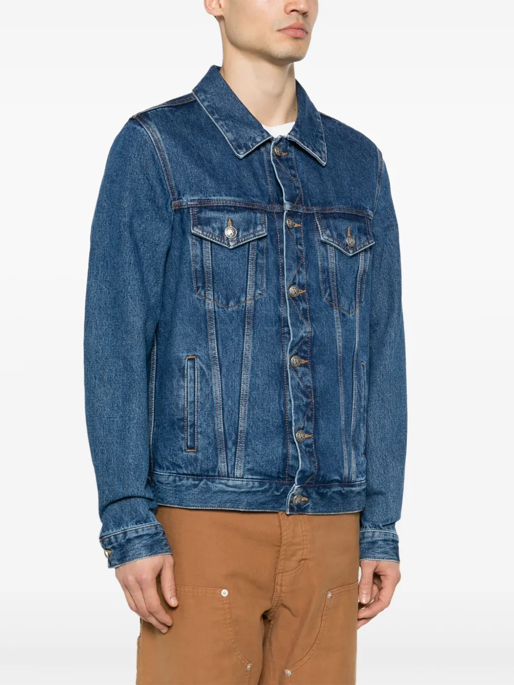 Подробнее о товаре: • индиго • хлопок • деним • дизайн со вставками • регулируемые ремешки с декоративными пуговицами на поясе • тисненый логотип сзади • пуговицы с выгравированным логотипом • классический воротник • длинные рукава • манжеты на пуговицах • два накладных кармана на груди • два передних кармана с листочкой • два внутренних накладных кармана • застежка на пуговицах спереди • прямой подол • частичная подкладка