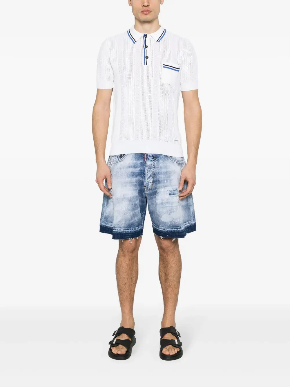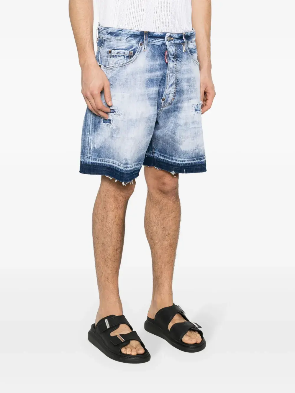 Подробнее о товаре: • индиго • хлопок • ткань с твиловым переплетением • обработанный деним • декоративные складки • эффект потертости • контрастная строчка • логотип спереди • пуговицы с выгравированным логотипом • нашивка с логотипом сзади • петли для ремня • завышенная талия • свободный крой • длина до бедер • классическая пятикарманная модель • ширинка на пуговицах • необработанный подол • модель без подкладки