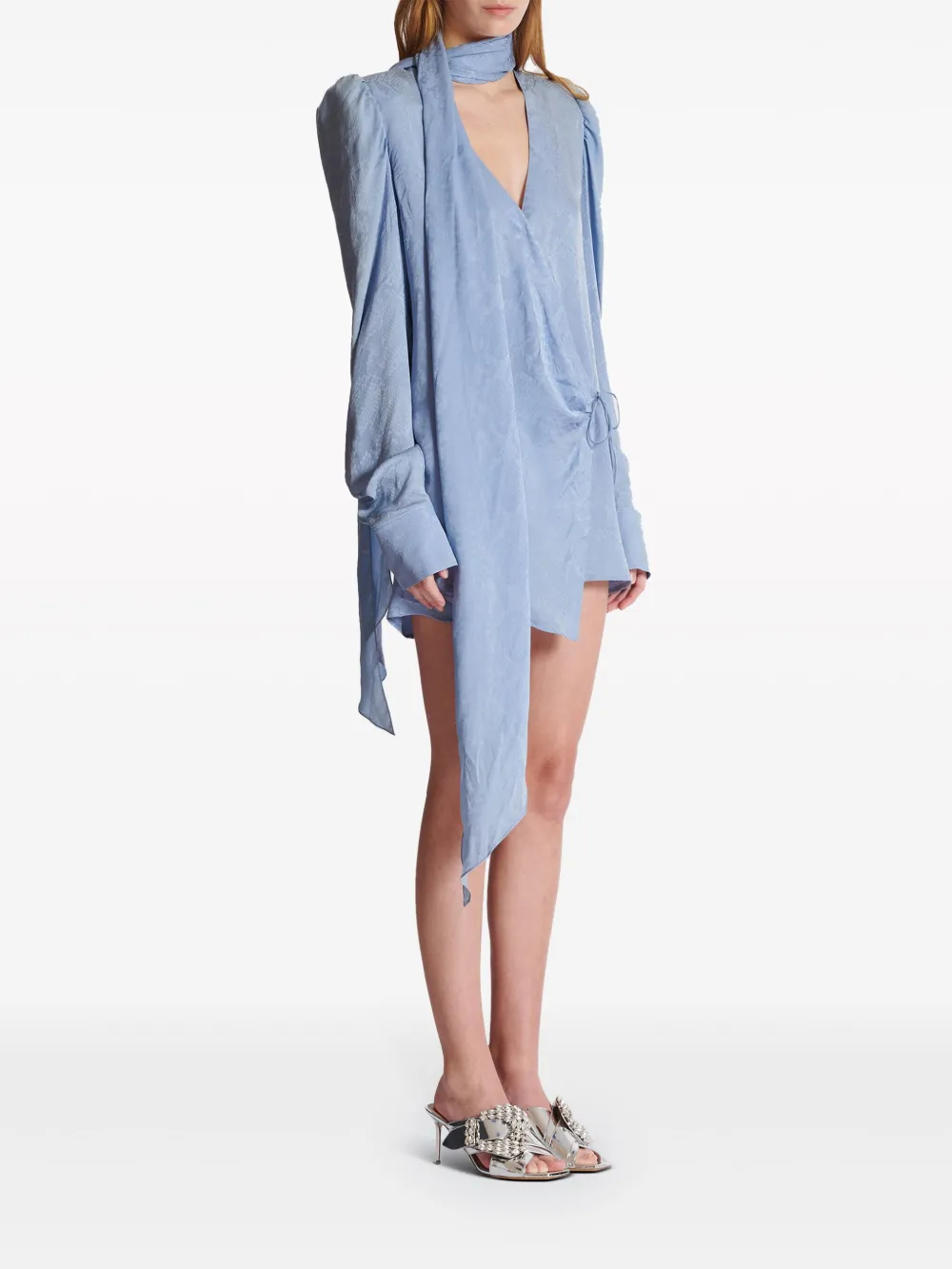 Шелковое платье мини со змеиным принтом BALMAIN, синий 209 496₽