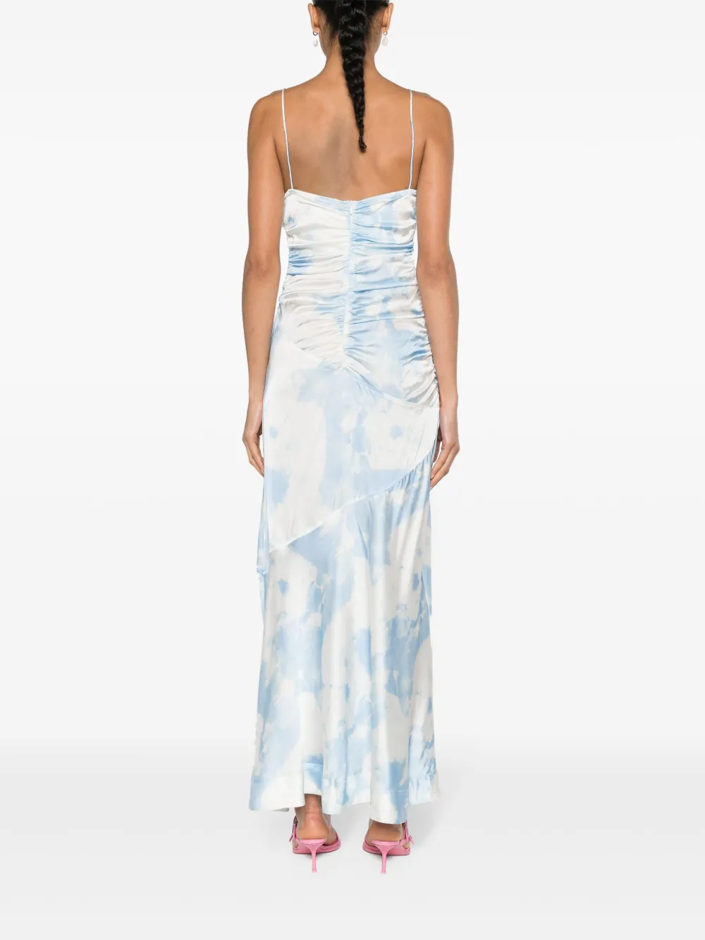 Атласное платье макси с принтом GANNI, синий 35 958₽
