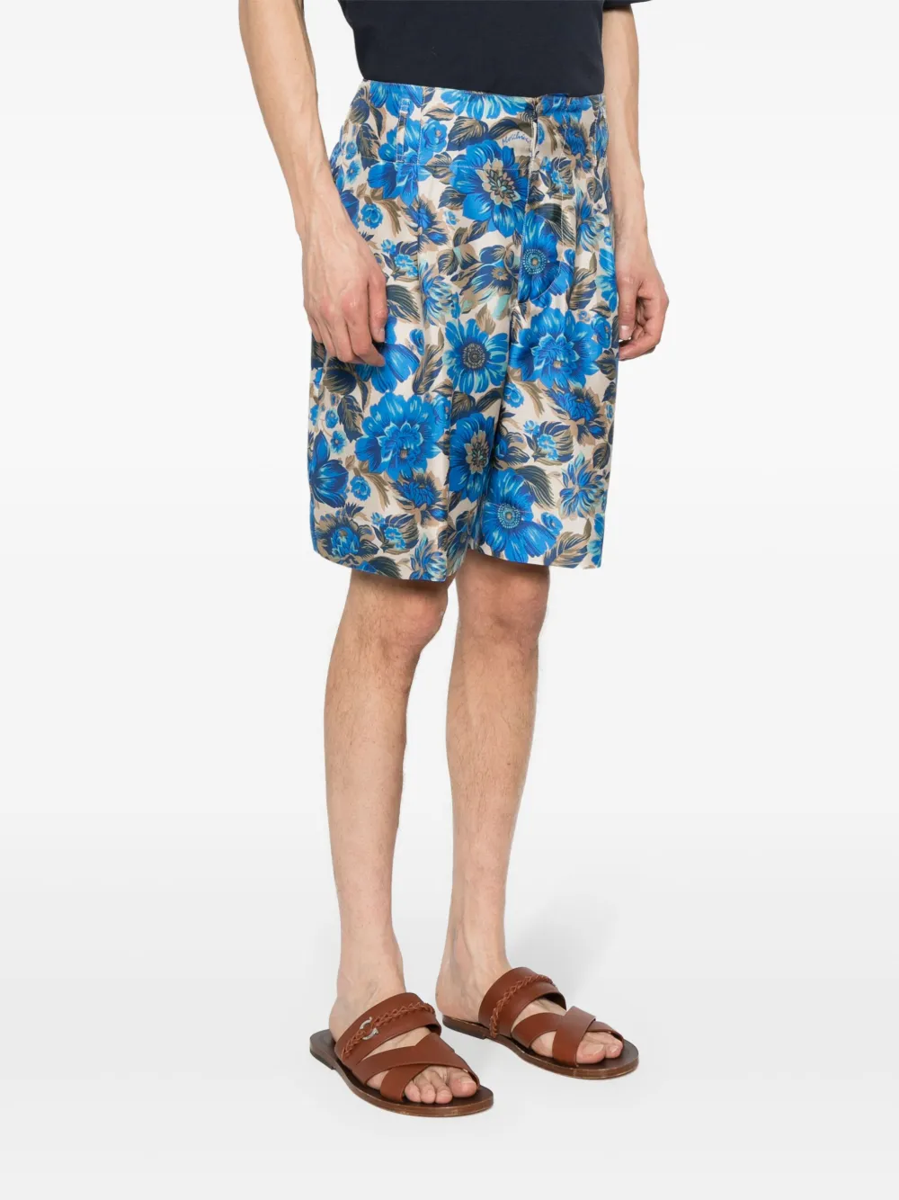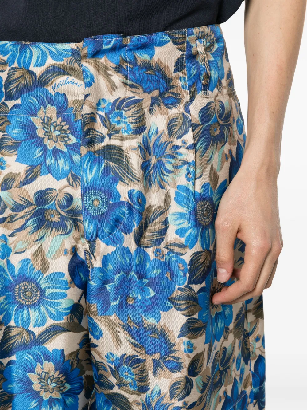 Шелковые шорты с цветочным принтом Moschino, синий