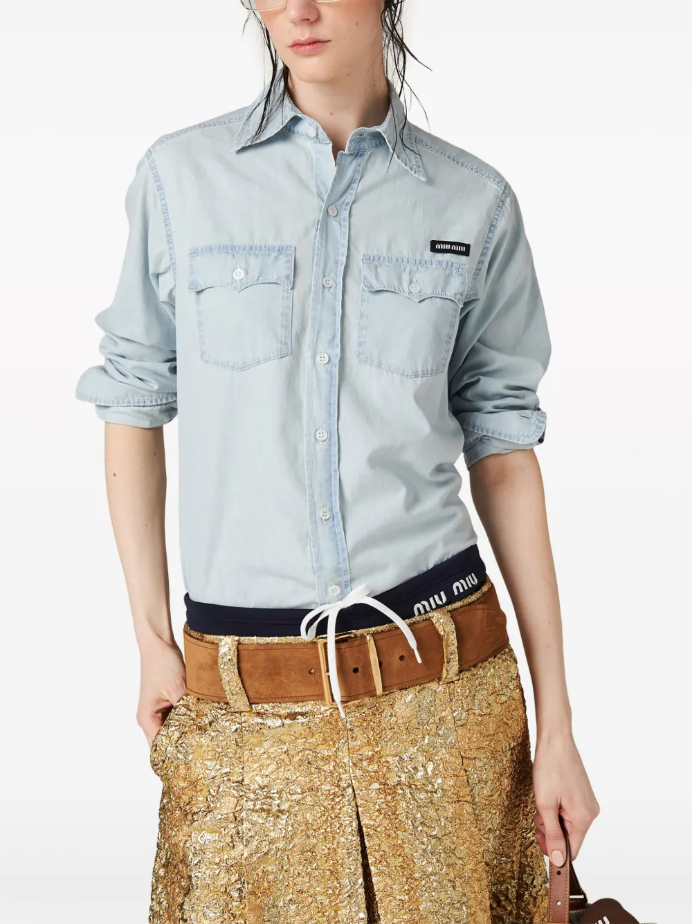 Рубашка с логотипом MIU MIU, синий 104 956₽