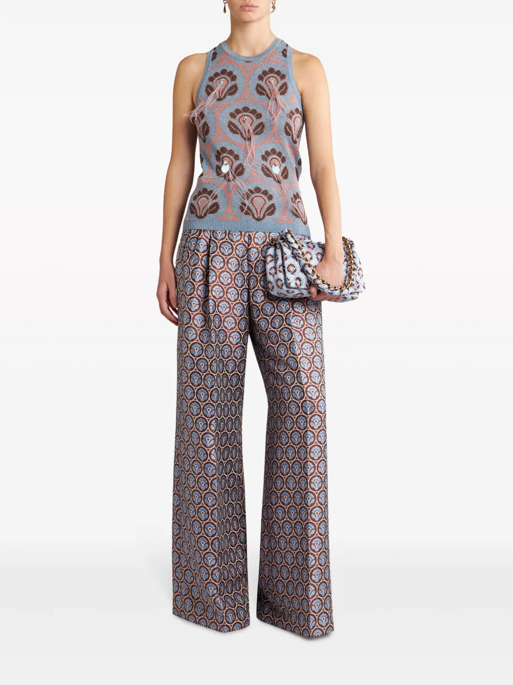 Жаккардовый топ с перьями ETRO, синий 65 946₽