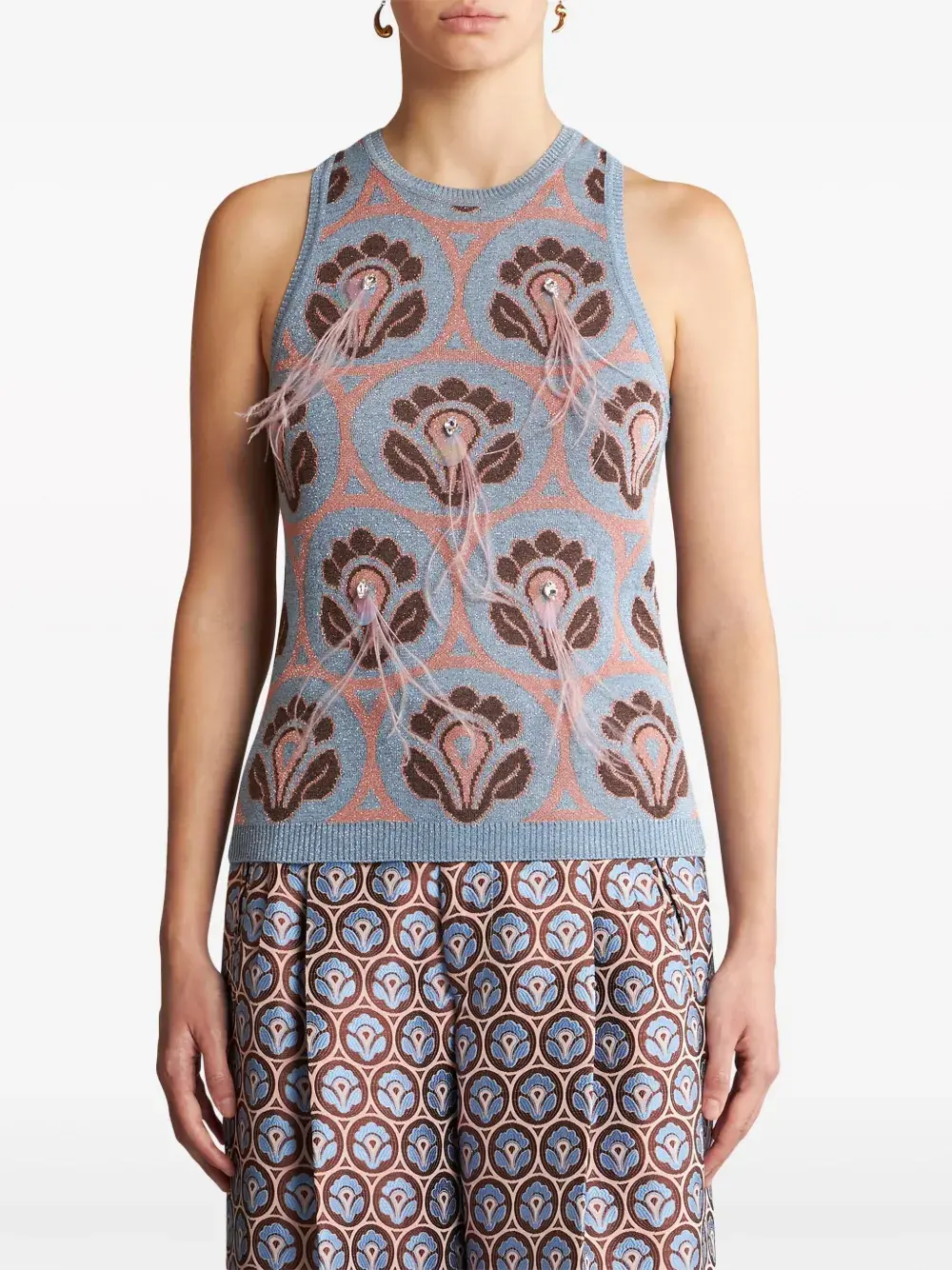 Жаккардовый топ с перьями ETRO, синий
