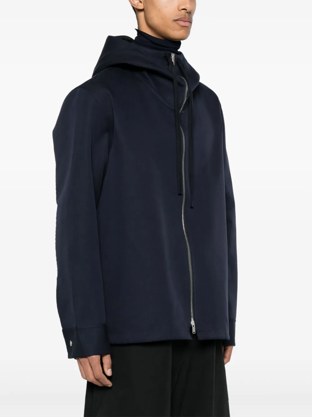 Куртка из смеси шелка и хлопка с капюшоном JIL SANDER, синий