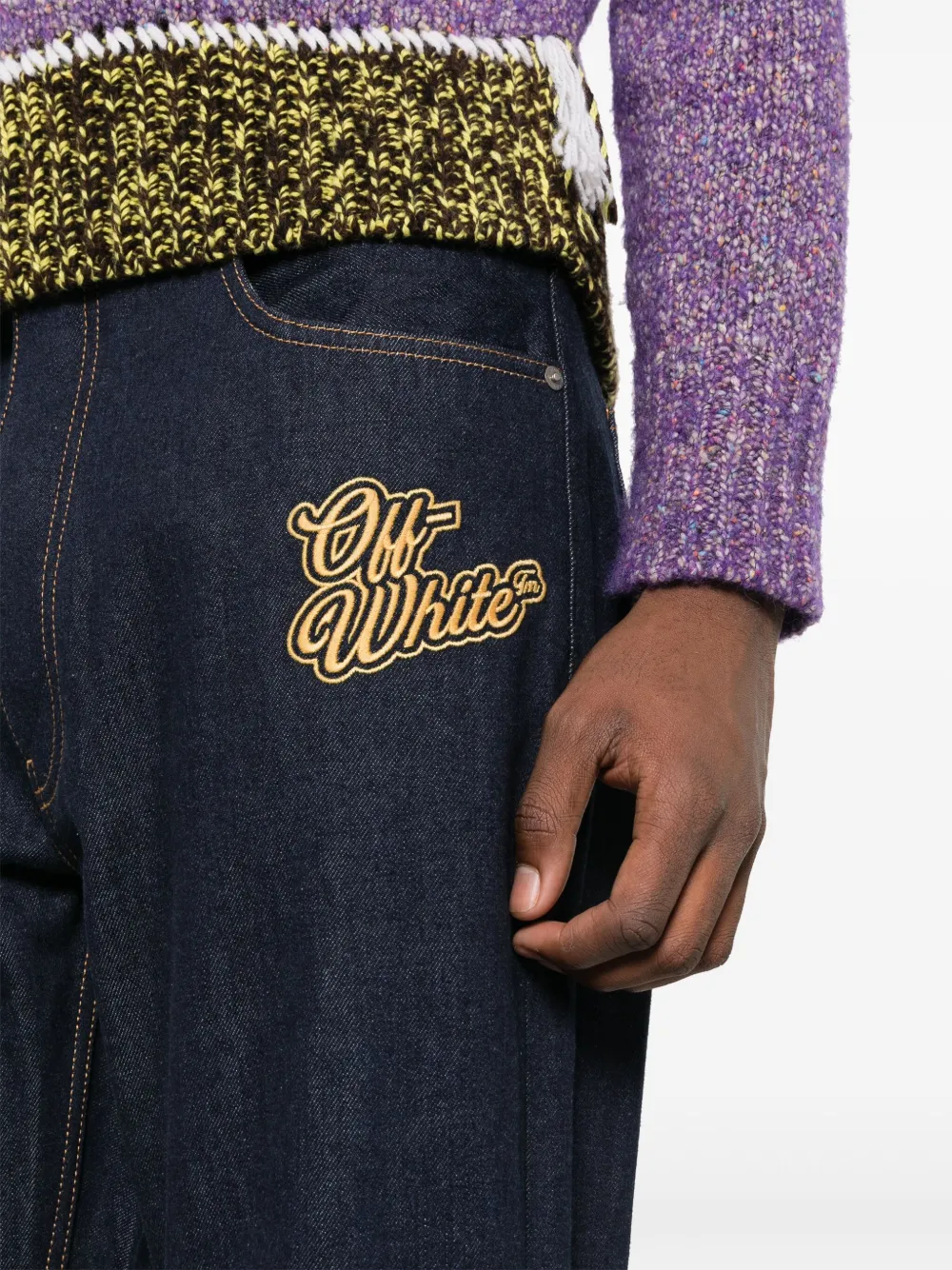 Расклешенные джинсы с вышитым логотипом OFF-WHITE, синий