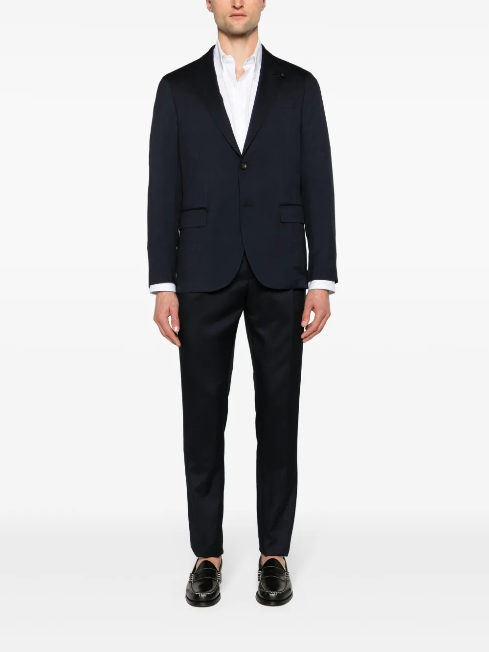 Костюм с однобортным пиджаком и брошью Lardini, синий