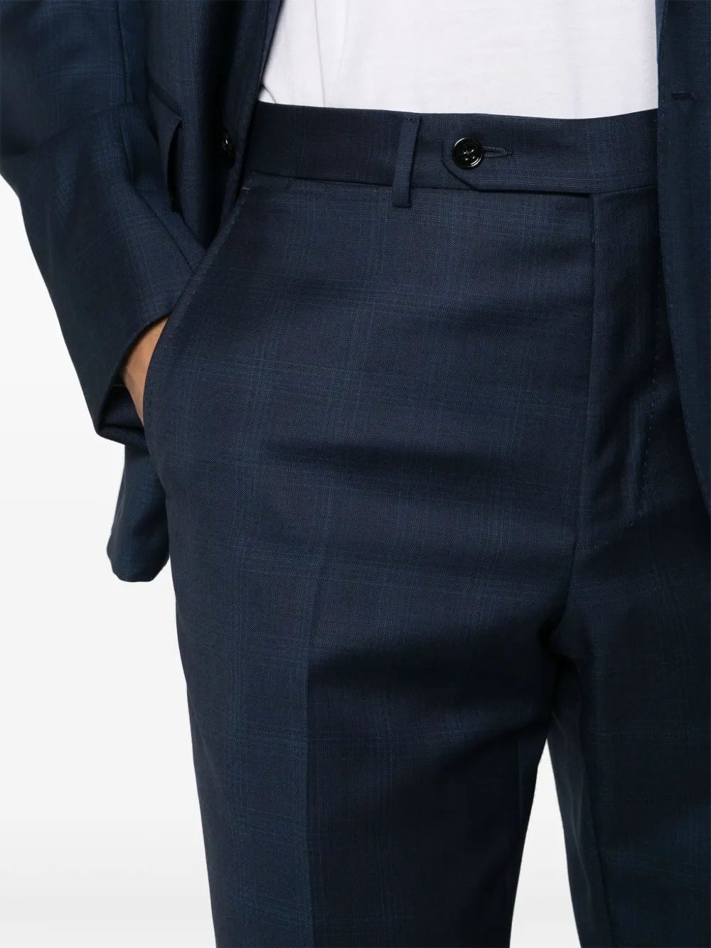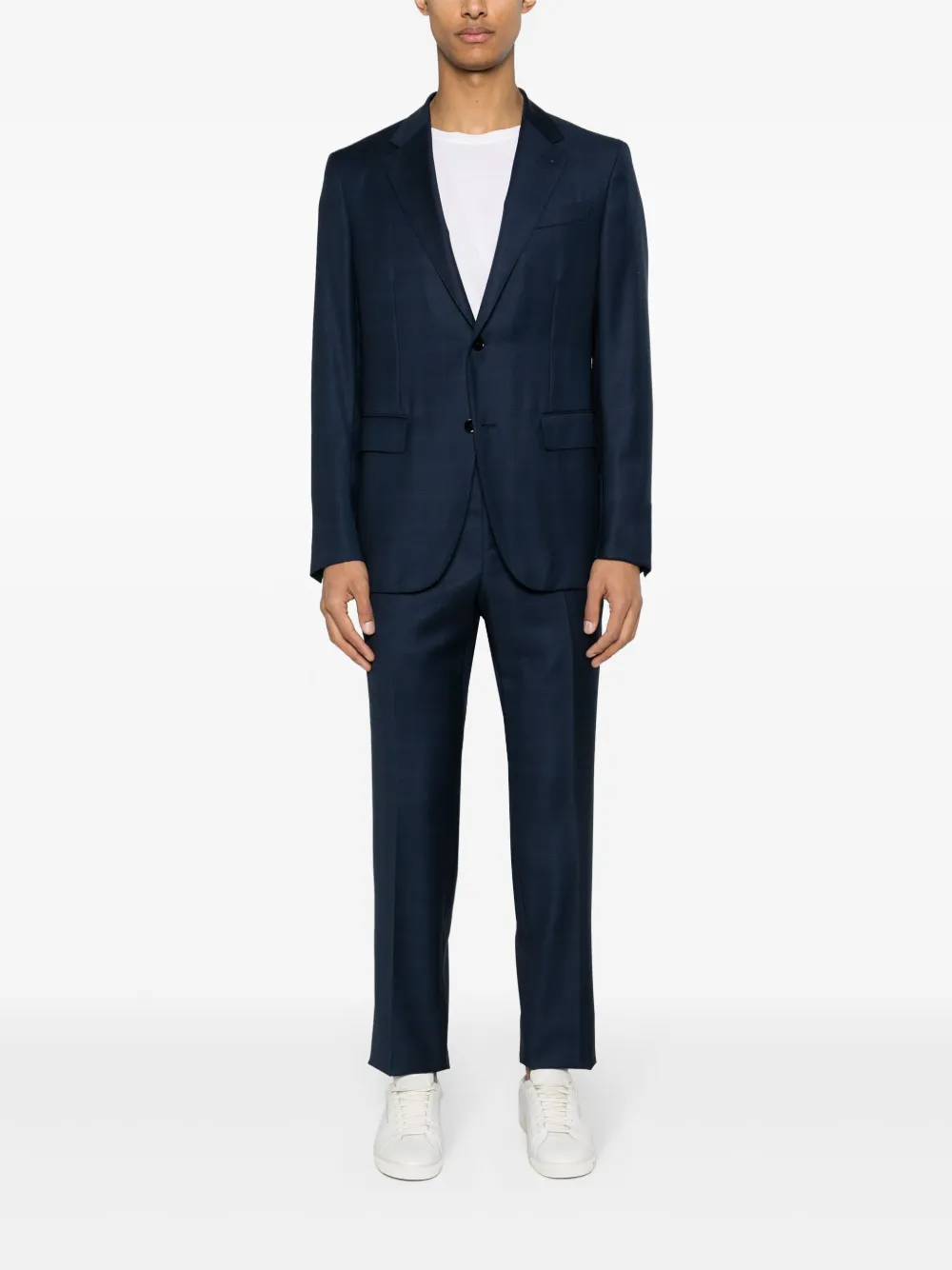Подробнее о товаре: • темно-синий • шерсть • зазубренные лацканы • подплечники • прорезной карман на груди • длинные рукава с манжетами на пуговицах • нашивка с логотипом на рукаве • защипы • два кармана с клапанами по бокам • две боковые шлицы сзади • внутренние прорезные карманы • частичная подкладка • прямой подол • петли для ремня • два прорезных кармана по бокам • стрелки • два прорезных кармана на пуговицах сзади • узкий крой • потайная молния спереди • смещенная застежка на пуговицах спереди
