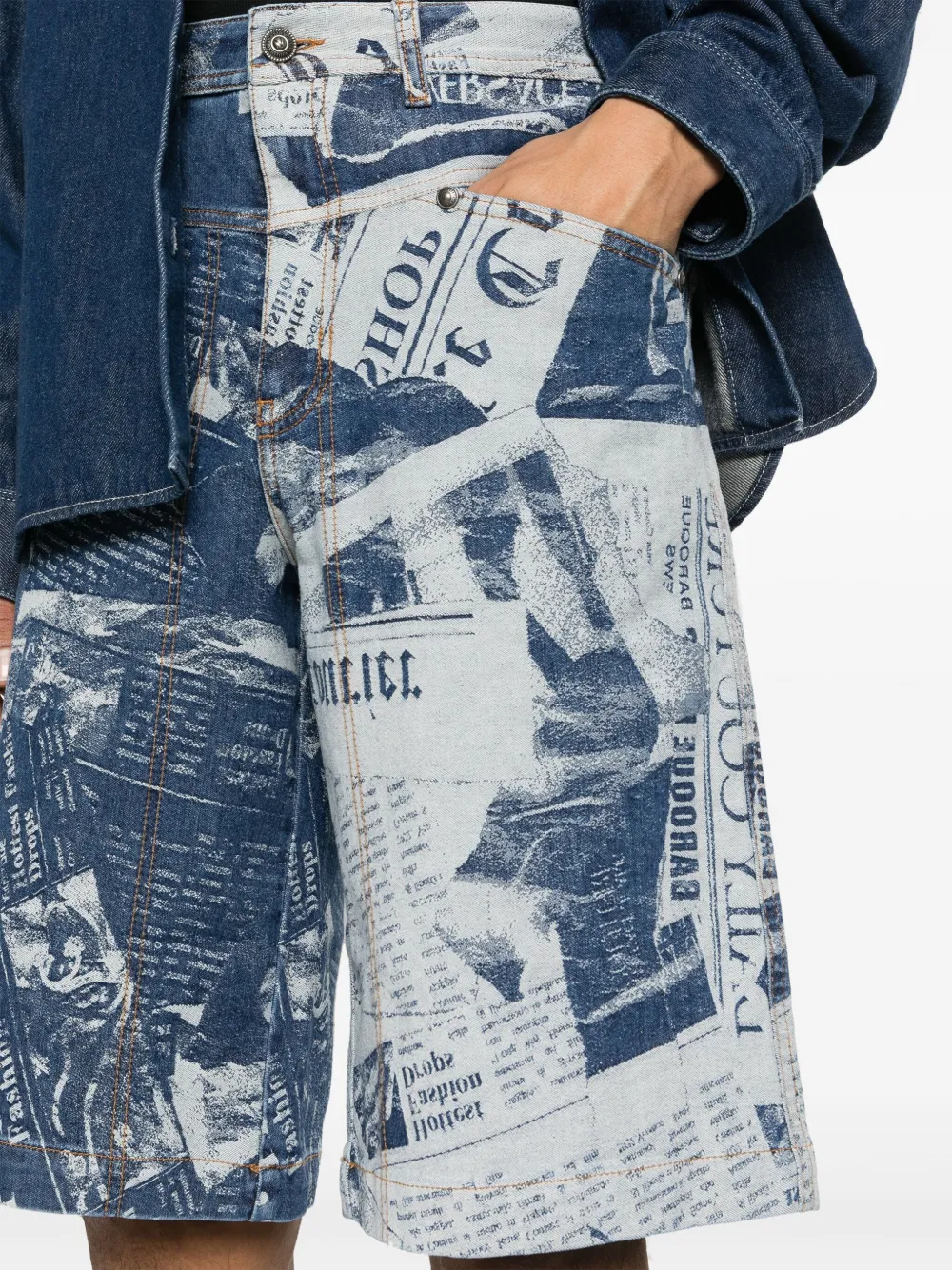 Джинсовые шорты с газетным принтом Versace Jeans Couture, синий