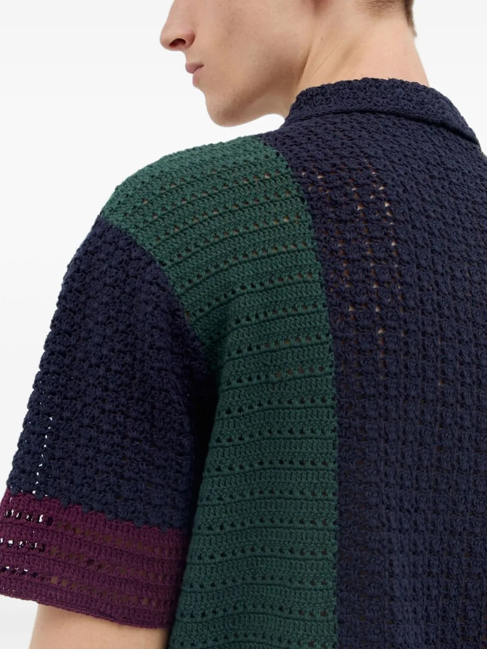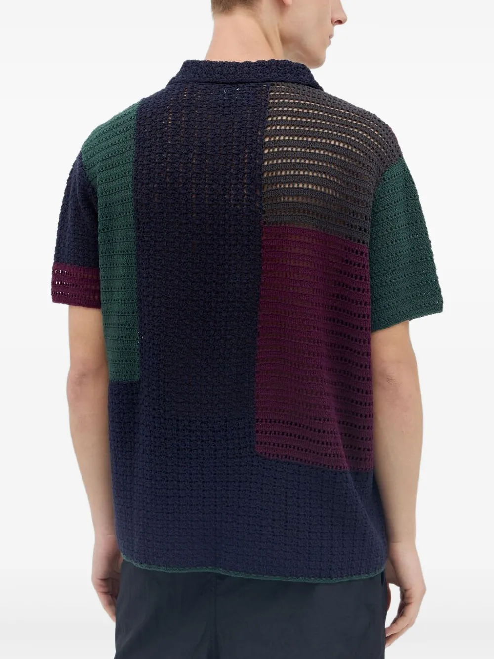 Темно-синяя застежка на пуговицы спереди, лоскутный дизайн, накладной карман на груди, короткие рукава